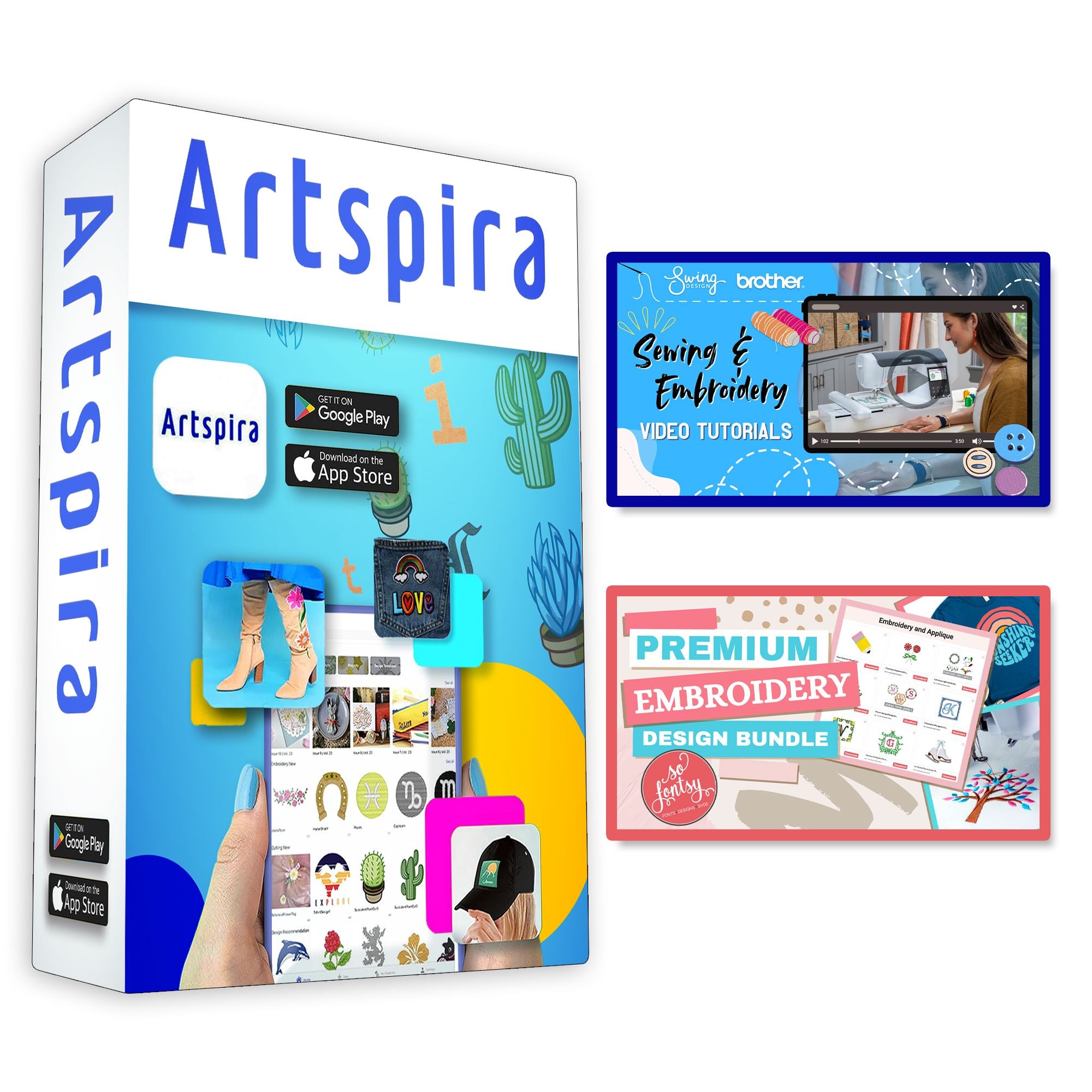 • Artspira Mobile App Draw your next project on the Artspira Mobile App. With an array of patterns and cut data you can download, plus the ability to make embroidery patterns by drawing on your mobile device and then transferring them to your PE545 wirelessly, the Artspira Mobile App will have you creating on the go.