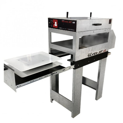 The Lawson Silver-Jet is an all electric operated unit. It is ideal for basic to sophisticated spraying of pre-treat solution. Just pull out the drawer, load the shirt and push the start button.