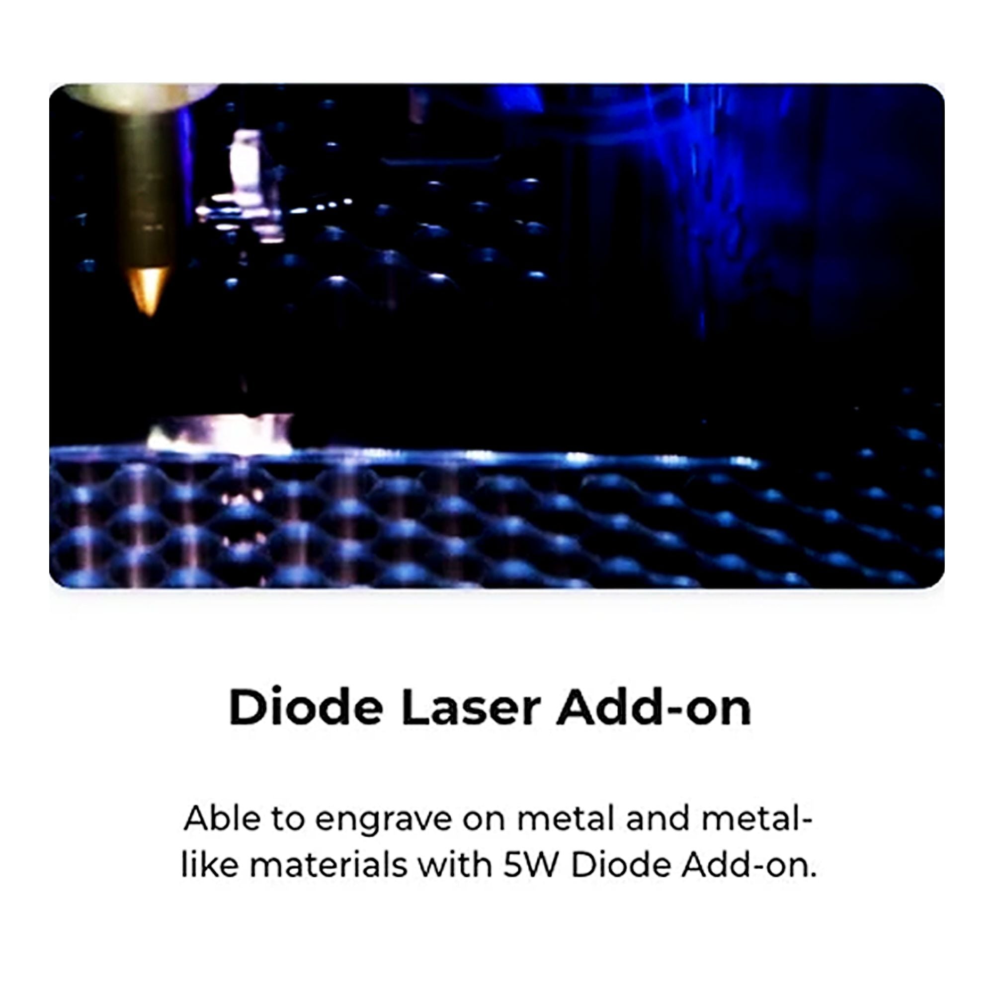 • Optional Diode Laser: If you’re looking for advanced functionality, the Diode laser attachment is the perfect solution, allowing for faster cutting speeds and deeper penetration to cut or engrave through materials like steel.