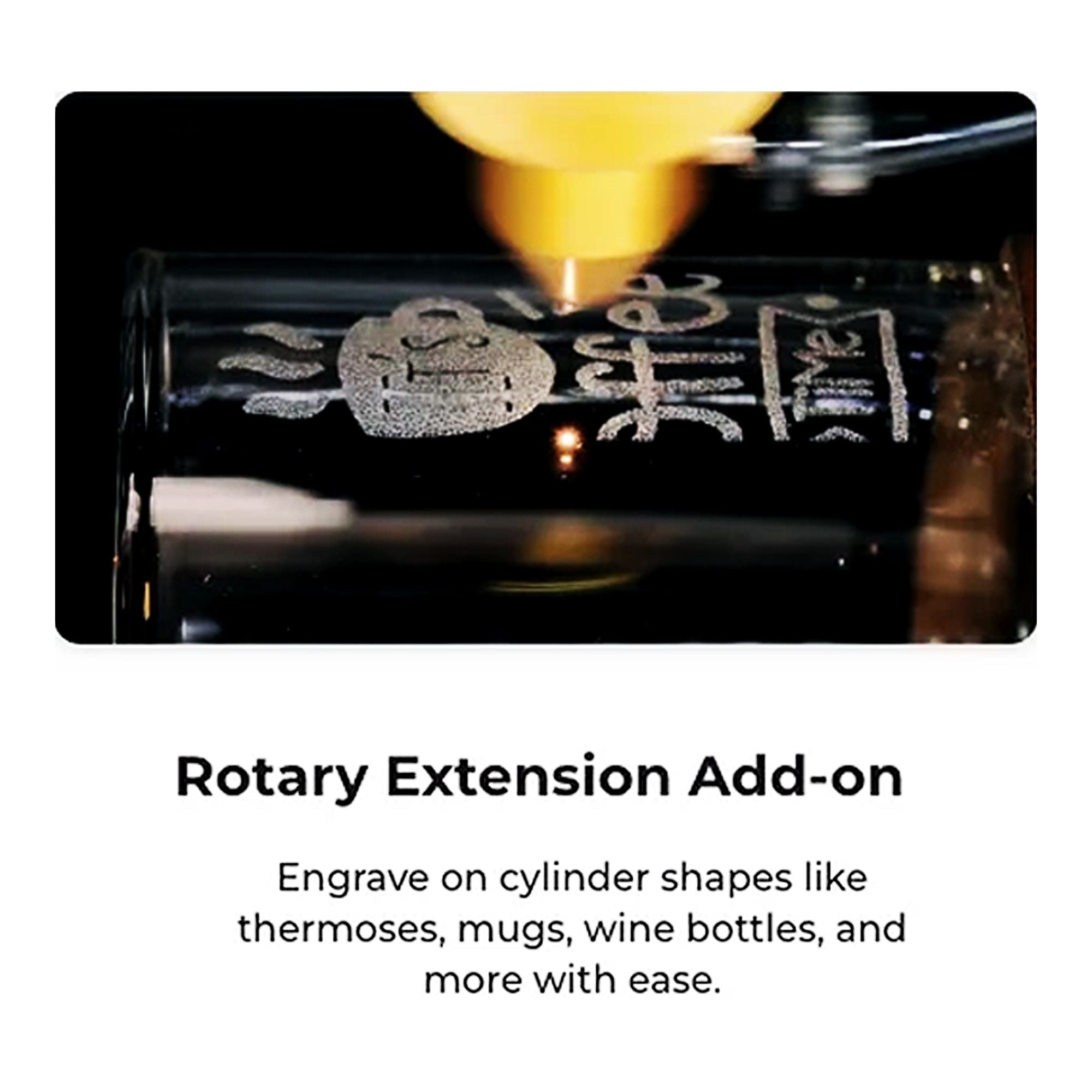 • Optional Rotary Module: Engrave on cylinder shapes like thermoses, mugs, pens, wine bottles, glassware and more with the rotary module attachment. The add-on opens a whole new dimension of customization!