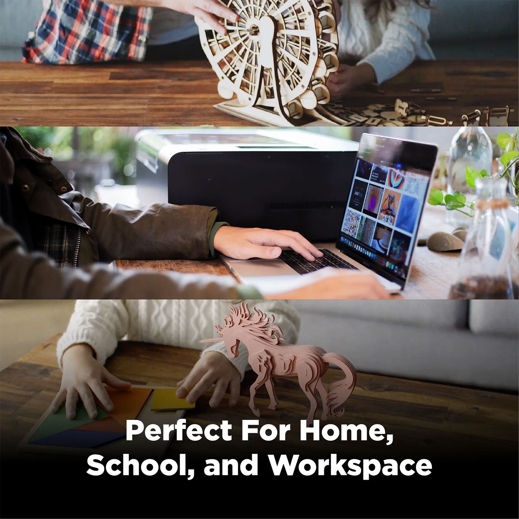 • Compact Design (24.8" x 17.5" x 6.9"): Fits on any desktop or workbench – perfect for home workshops, garages, or small studios. No need for a dedicated laser room!