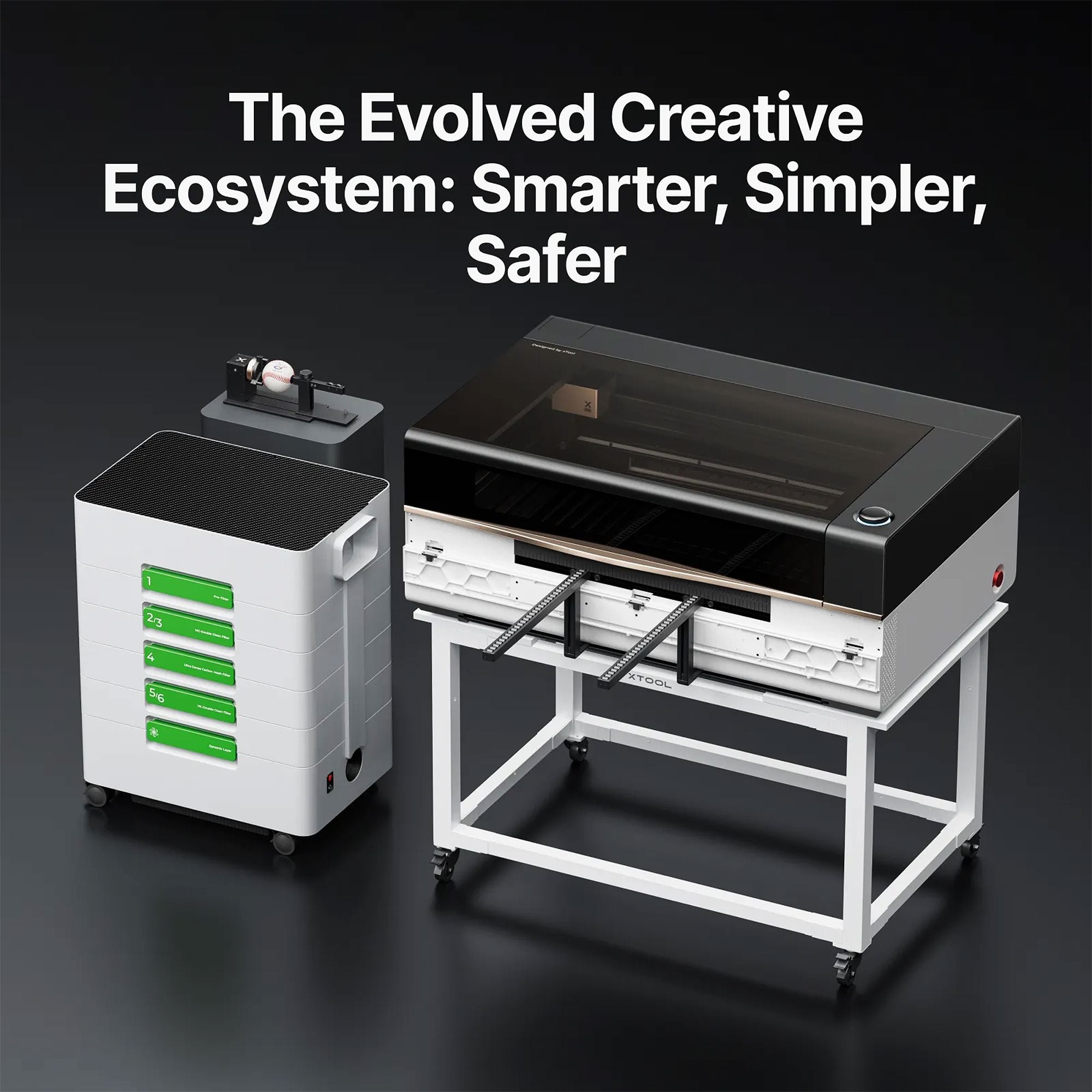 Seamless Compatibility and Expandability: Perfectly tailored for the xTool P3, the stand integrates flawlessly with its built-in AutoLift Base and LiDAR automation features. It supports the machine's Class 1 safety enclosure and fire suppression system, maintaining top-tier protection on the move. Pair it with other xTool ecosystem tools for a fully modular setup that adapts to your evolving needs—from batch production to intricate 3D engravings on metals and plastics.