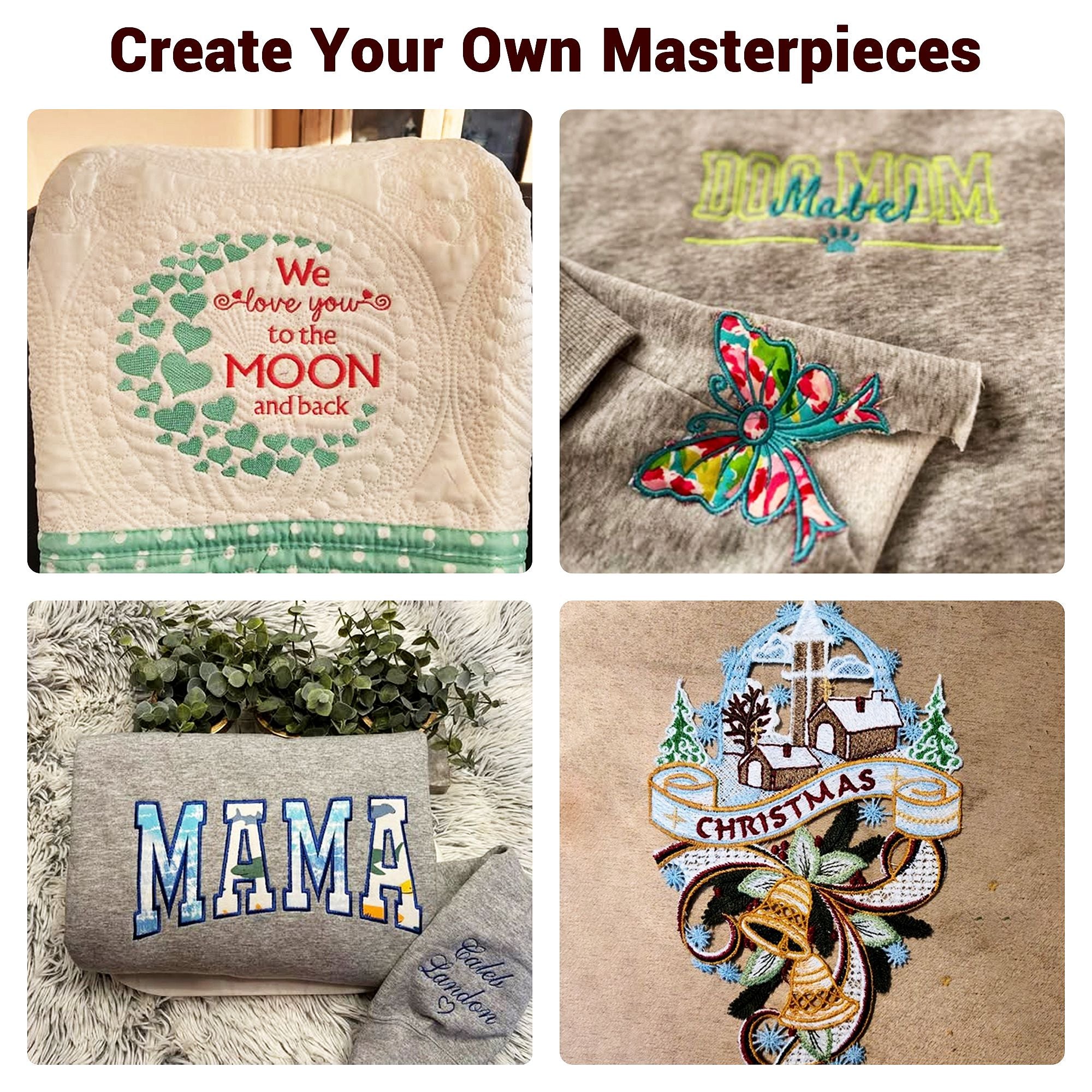 Large Embroidery Area (4" x 9.25"): Tackle a variety of projects, from sweatshirts and canvas bags to patches and pet accessories, with a generous embroidery area and two hoop sizes (4" x 4" and 4" x 9.25").