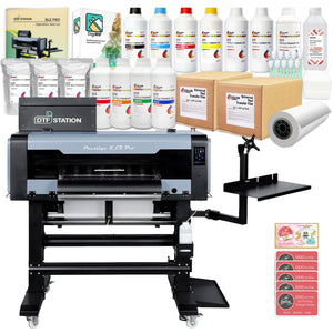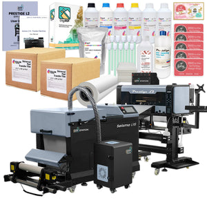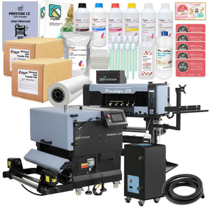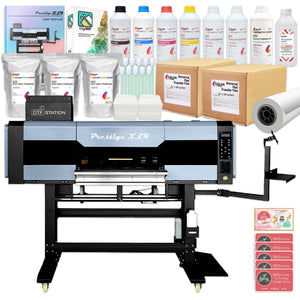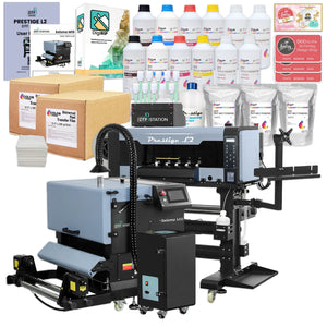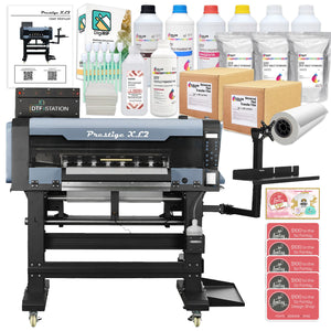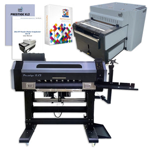 The Prestige XL4, XL3, XL2 - 24" wide DTF printers & L2 - 16" wide DTF printer are the perfect high-end DTF transfer printer options; with dual printheads, premium print quality, and a smaller size in comparison to other printers with similar performance. Print on DTF film rolls and speed up your DTF pipeline for efficiency, ease-of-use, and optimal results. The Prestige L Series Direct to Film (DTF) Printers are the best reliable and affordable way to create high quality vibrant DTF transfers without sacrificing a large amount of space. Backed by both Prestige and Swing Design's lifetime U.S. based technical support, the Prestige LX2 & LX printers have become the premier DTF printer choice. Start creating your own direct-to-film transfers at the home office or take this setup to events and print custom shirts. Print on various types of fabrics such as cotton, canvas, polyester, blend, nylon, rayon, rubber materials, and more! We offer financing options on all Prestige DTF Printers.