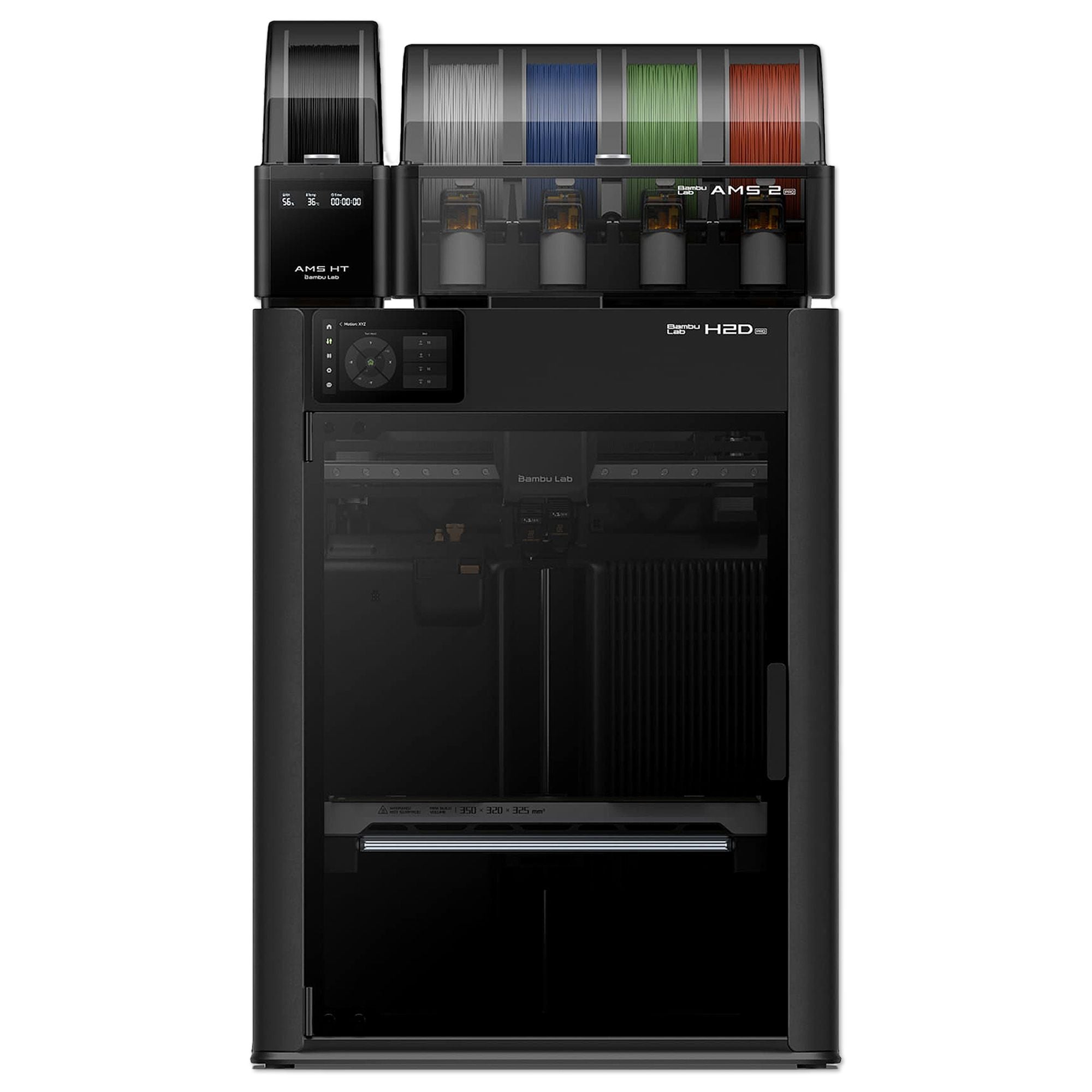 Discover the Bambu Lab H2D PRO Dual Head 3D Printer, a cutting-edge solution for professional-grade additive manufacturing. Engineered for precision, this dual-nozzle 3D printer excels in multi-material printing and multi-color printing, allowing seamless integration of flexible, rigid, and high-performance filaments like PLA, PETG, TPU, and carbon fiber-reinforced materials. With a 350°C hotend and 65°C heated chamber, the H2D PRO ensures superior layer adhesion and minimal warping, perfect for complex engineering projects. Its large build volume of 350x320x325mm supports ambitious designs, while the closed-loop servo extruder and 5μm resolution optical motion calibration deliver unmatched accuracy at speeds up to 600mm/s. Equipped with enterprise network security, custom fleet management, and a tungsten nozzle for durability, this printer is ideal for businesses and advanced makers. The AMS HT system enhances filament management with drying and storage, supporting up to 25 colors for vibrant, professional results. Elevate your workflow with the Bambu Lab H2D PRO, the ultimate 3D printing solution for rapid prototyping and innovative fabrication.