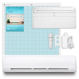 The new Silhouette Cameo 5 PLUS is the best vinyl cutting machine on the market for crafters, hobbyist, and small business. The Silhouette Cameo 5 features: quiet cutting with up to 400mm/s, a LED lit touch panel, 5000 grams of force, built in roll feeder, built in vinyl trimmer, one click auto blade, tool detection, dual motor system, built in cross cutter, and more. Swing Designs offers the best Silhouette Cameo 5 PLUS Bundles on the market with only the highest graded materials and accessories!