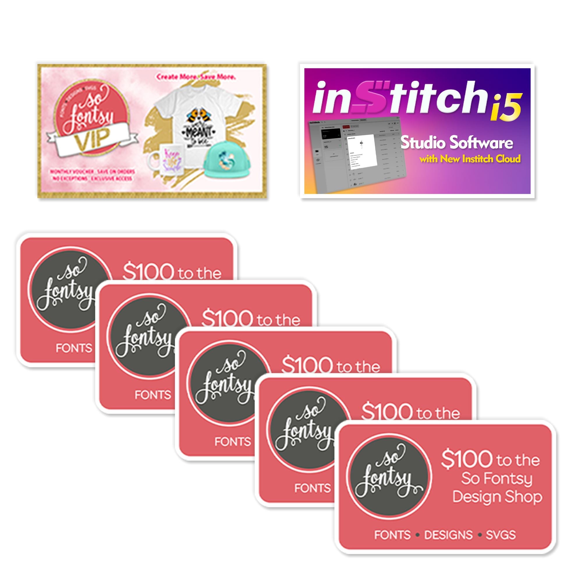 • $500 in So Fontsy Designs - SVGs, Embroidery, Commercial Use (Choose from 5,000 Designs with new content added daily. Valid on the card redemption portion of the site.)