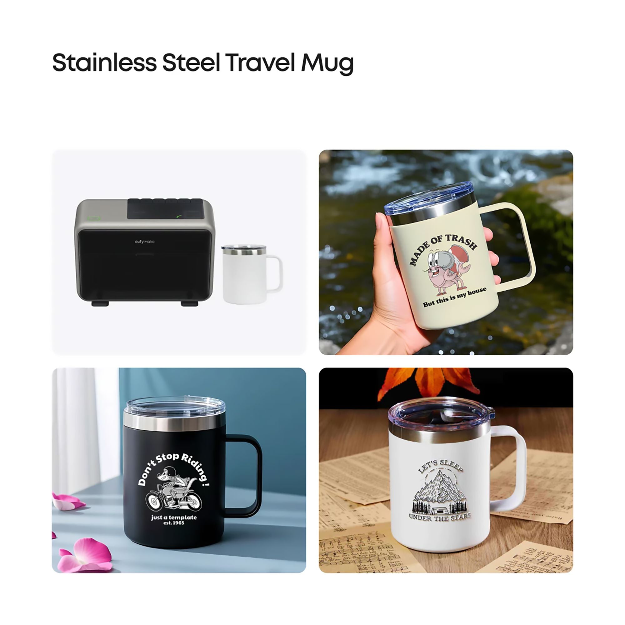 Rotary Printing – Add the EufyMake rotary attachment to unlock cylindrical printing capabilities. Print directly on mugs, tumblers, water bottles, wine glasses, thermoses, and any round object. Tap into the massive personalized drinkware market with professional-quality prints that wrap seamlessly around curved surfaces.