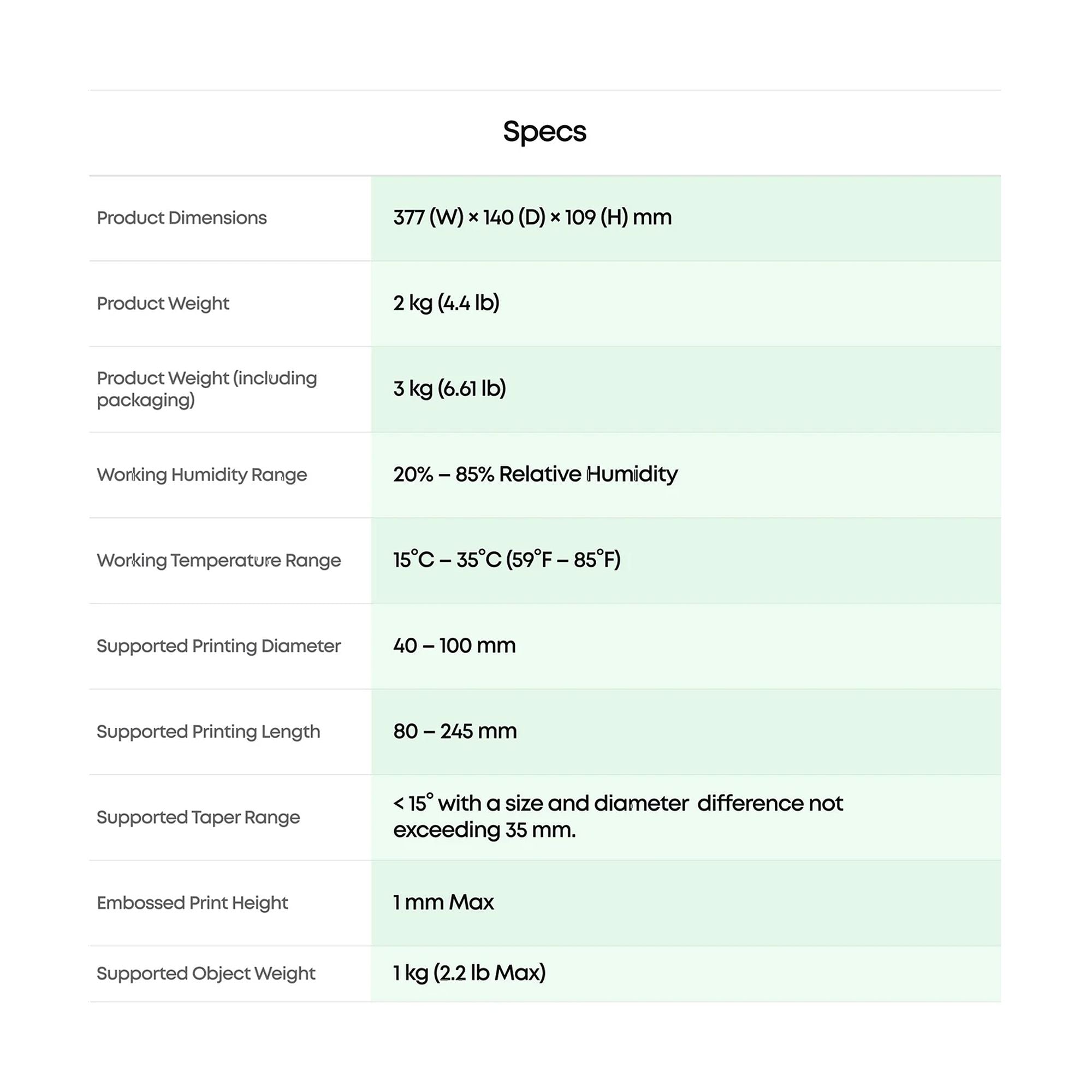 • Auto-Leveling Rotary Printing: Directly print 3D textures onto cylinders, cones, and mugs.