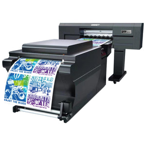 UNINET's ink-based direct-to-film digital transfer printing system with a roll feeder is uniquely suited for the short-volume production of exceptional quality full-color print transfers for the digital apparel decorating market.
