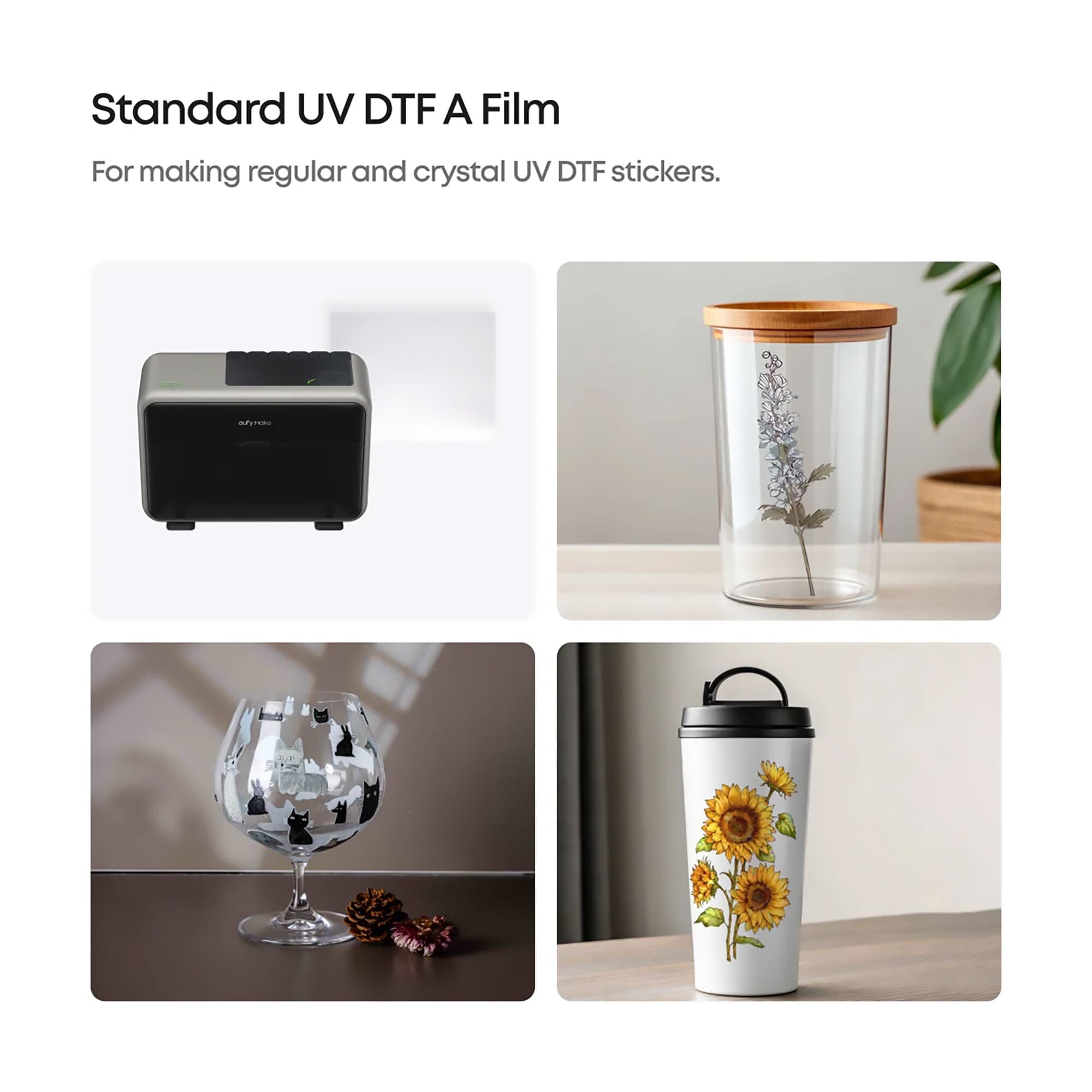 Elevate your DIY game to professional levels with the eufyMake Deluxe Material Kit—a comprehensive 54-piece creative powerhouse designed for endless innovation in multi-material printing. Whether you're printing vibrant, eye-catching designs on tumblers, crafting personalized stickers that stick with style, customizing coasters for your next gathering, or bringing stunning wall art to life, this kit transforms everyday objects into personalized masterpieces. Say goodbye to bland blanks and hello to a world where your imagination runs wild, backed by the precision of UV DTF technology for durable, fade-resistant results on virtually any surface.