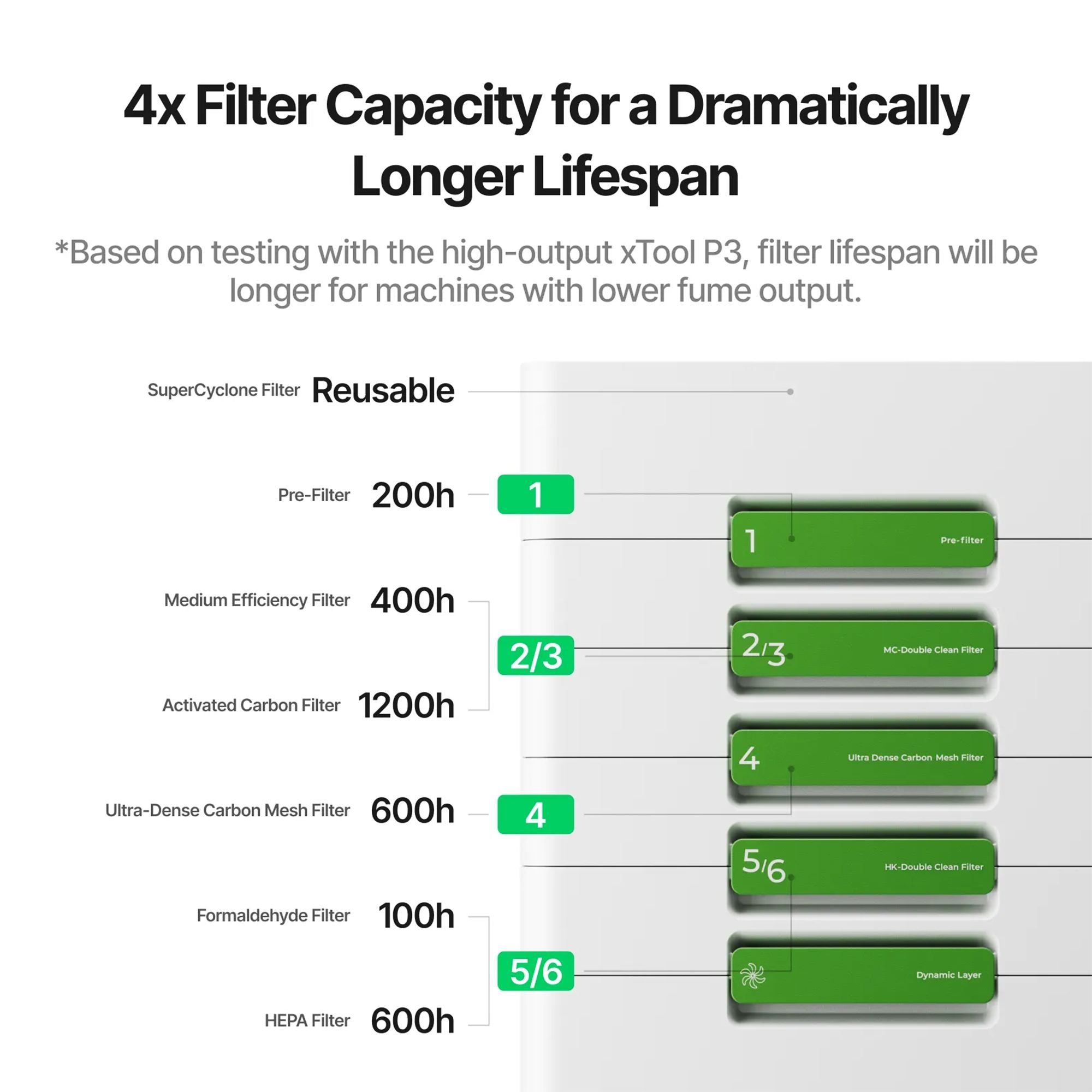 Filter Lifespan: 100–600 hours (varies by filter type, 4x longer with AP2 MAX)