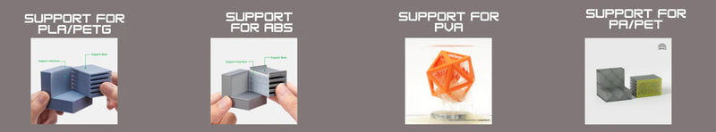 SHOP PA/PET FILAMENTSupport filament for 3D printers is a specialized material used to create temporary structures that support overhanging or complex parts during the printing process. It allows for greater design freedom, enabling the creation of intricate geometries that would otherwise be impossible to print. Once the print is complete, support material can be easily removed, often by dissolving in water or a specific solvent, leaving a smooth and precise final product.