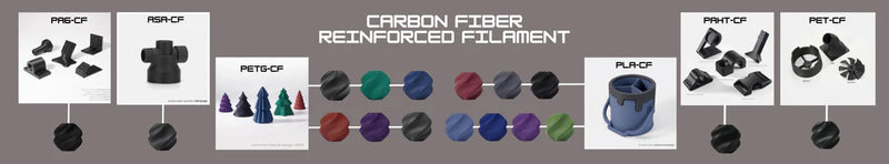 SPECIALITY PLA FILAMENTCarbon fiber reinforced filament is a high-performance material for 3D printing, combining the strength and stiffness of carbon fibers with the versatility of base thermoplastics like PLA, PETG, or ASA. This filament produces lightweight, durable, and rigid parts, making it ideal for aerospace, automotive, and prototyping applications. Its benefits include reduced warping, improved dimensional stability, and enhanced mechanical properties, perfect for functional and load-bearing components.