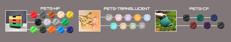SHOP CARBON FIBER REINFORCED FILAMENTPETG filament is a versatile material for 3D printing, combining the strength of ABS with the ease of use of PLA. It offers excellent durability, impact resistance, and chemical resistance, making it ideal for functional prototypes, mechanical parts, and outdoor applications. Additionally, PETG's low shrinkage and good layer adhesion ensure smooth, reliable prints suitable for both beginners and professionals. **SEE PETG-CF under CARBON FIBER REINFORCED FILAMENT