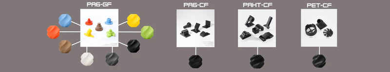 SHOP TPU/PC FILAMENTPA (polyamide, commonly known as nylon) and PET (polyethylene terephthalate) filaments are versatile materials for 3D printing. PA offers high strength, flexibility, and resistance to wear, making it ideal for engineering parts, gears, and functional prototypes. PET, known for its ease of printing, chemical resistance, and food safety (in its PETG form), is commonly used for creating durable household items, containers, and mechanical components. Both filaments excel in producing strong, reliable parts for various applications. **SEE PET-CF & PA6-CF under CARBON FIBER REINFORCED FILAMENT