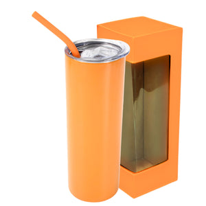 Experience the ultimate in customizable drinkware with the best Powder Coated Colored Stainless Steel Tumblers. Perfect for laser engraving, epoxy resin, heat transfer vinyl and UV DTF stickers. The seamless construction and straight, non-tapered design provide a modern aesthetic, complemented by a color-matching window box for a stylish presentation. With a generous 20oz capacity, these double-wall, vacuum-insulated tumblers boast a powder-coated glossy finish, ensuring durability and an attractive look. The inclusion of a sliding splash-proof lid, matching colored straw and care card enhances the overall user experience. Keeping your beverages cold for over 24 hours and warm for 8 hours, these BPA-free tumblers also offer the added benefit of no logos, allowing for effortless customization according to your preferences. Each tumbler is individually boxed, ensuring a perfect blend of style, functionality, and personalization for your every sip.