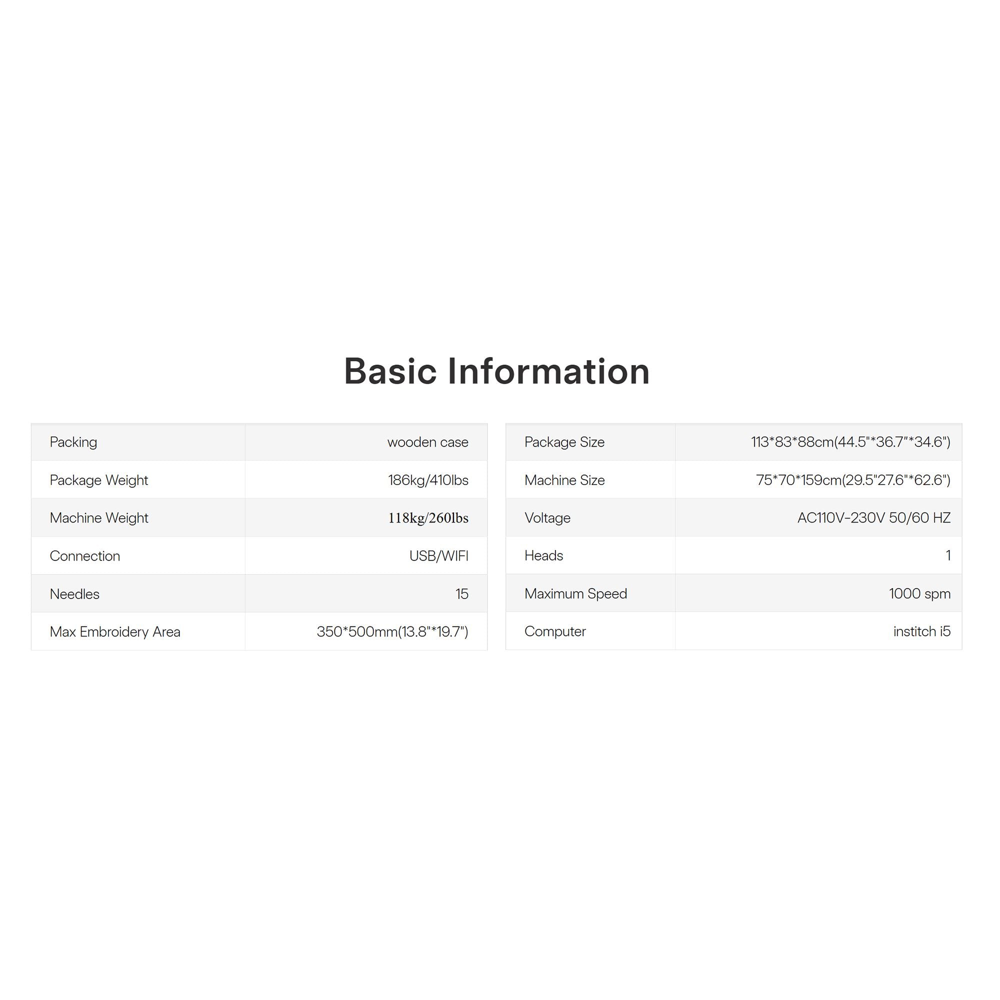| Max Embroidery Area | 350*500mm(13.8"*19.7") |