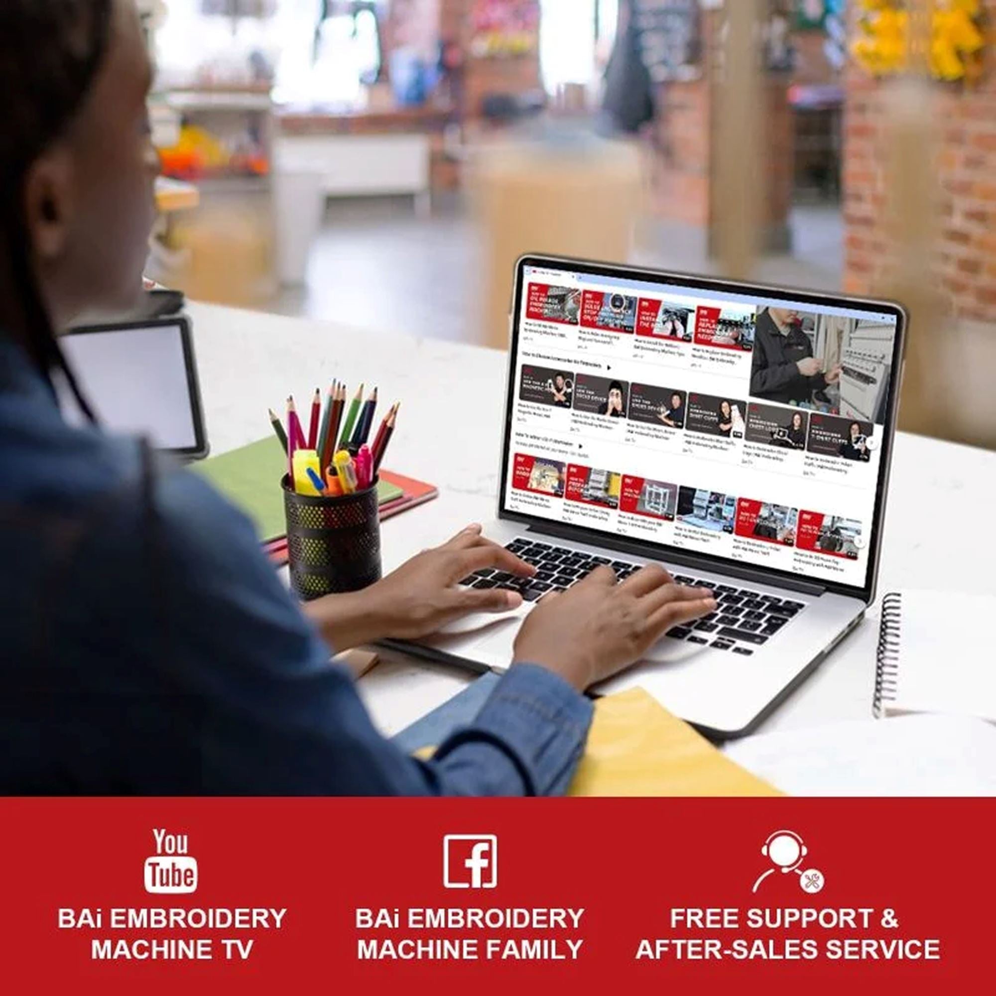 Free Shipping: Please note that the BAi MIRROR ships via insured fright in a reshipable crate. We offer both Personal and Business Financing on all BAi Embroidery Machines.
