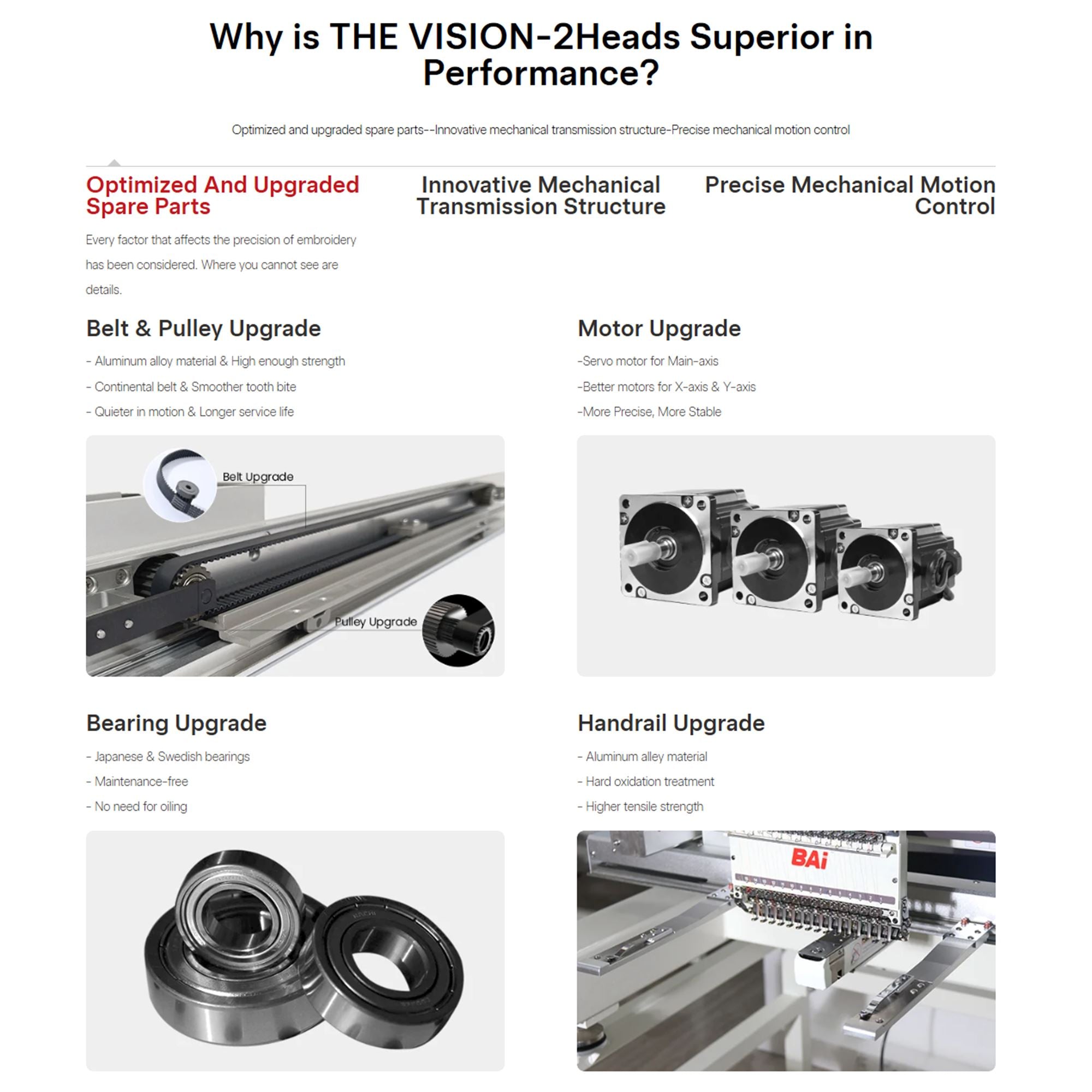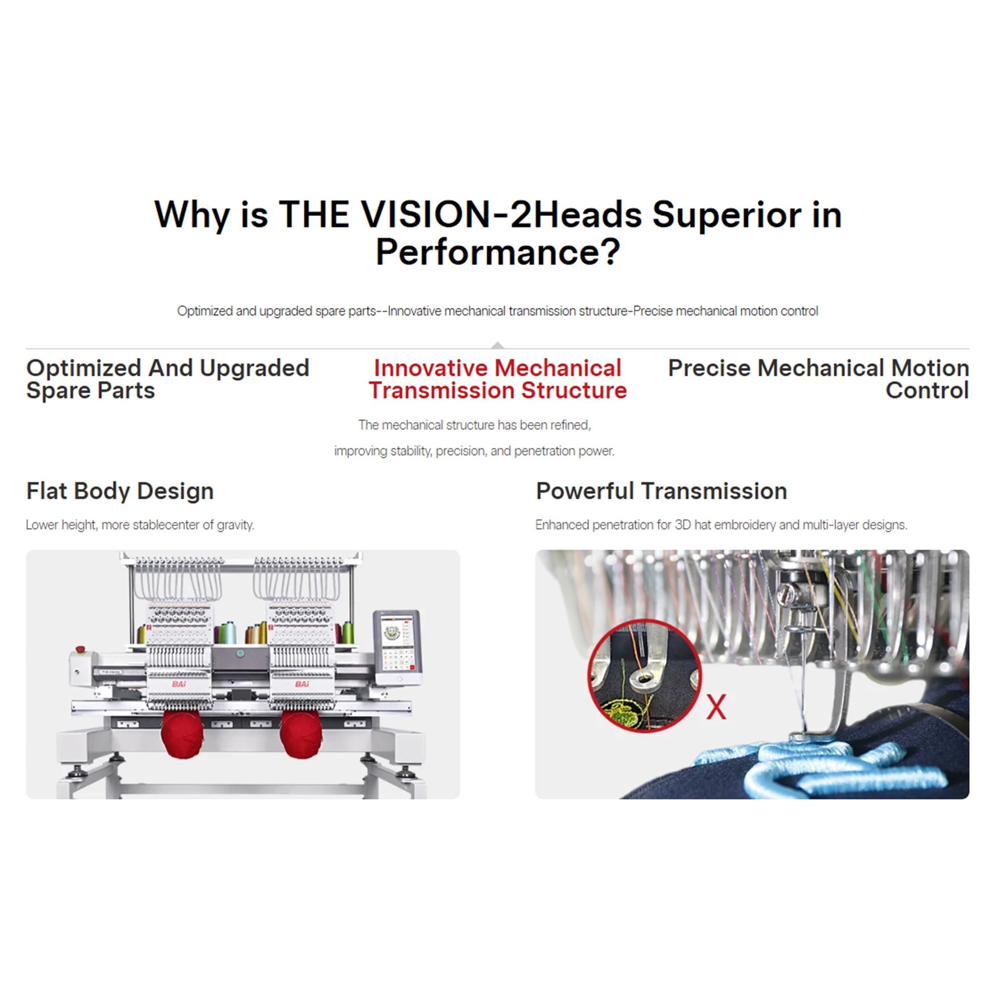 Free Shipping: Please note that the BAi VISION 2 Head ships via insured fright in a reshipable crate. We offer both Personal and Business Financing on all BAi Embroidery Machines.