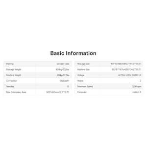 | Max Embroidery Area | 500*400mm(19.7"*15.7") |