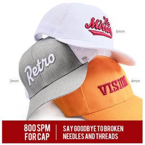 Stable 3D Hat Embroidery - Achieves good results on 1-5 mm 3D foam without thread breaks