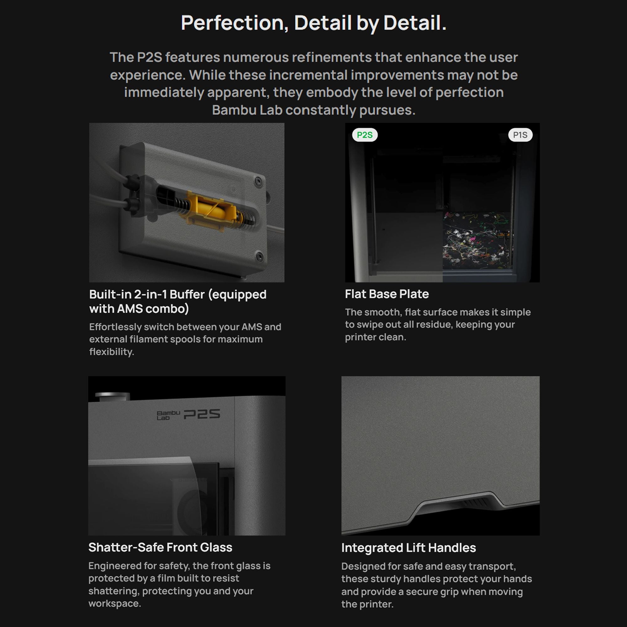 Investing in the Bambu Lab P2S with AMS 2 Pro means unlocking unparalleled reliability and creativity. Experience 60% faster multi-color switching, reducing print times by up to 10 minutes per 100 changes. The enclosed chamber minimizes warping in engineering filaments, while AI-driven features provide peace of mind for overnight prints. Users rave about its rock-solid performance, with one reviewer calling it "the Apple of 3D printing" for its seamless ecosystem. Whether you're a beginner exploring easy 3D printing or a pro tackling complex designs, the P2S delivers consistent, beautiful results—proven by its resilience even after accidental drops.