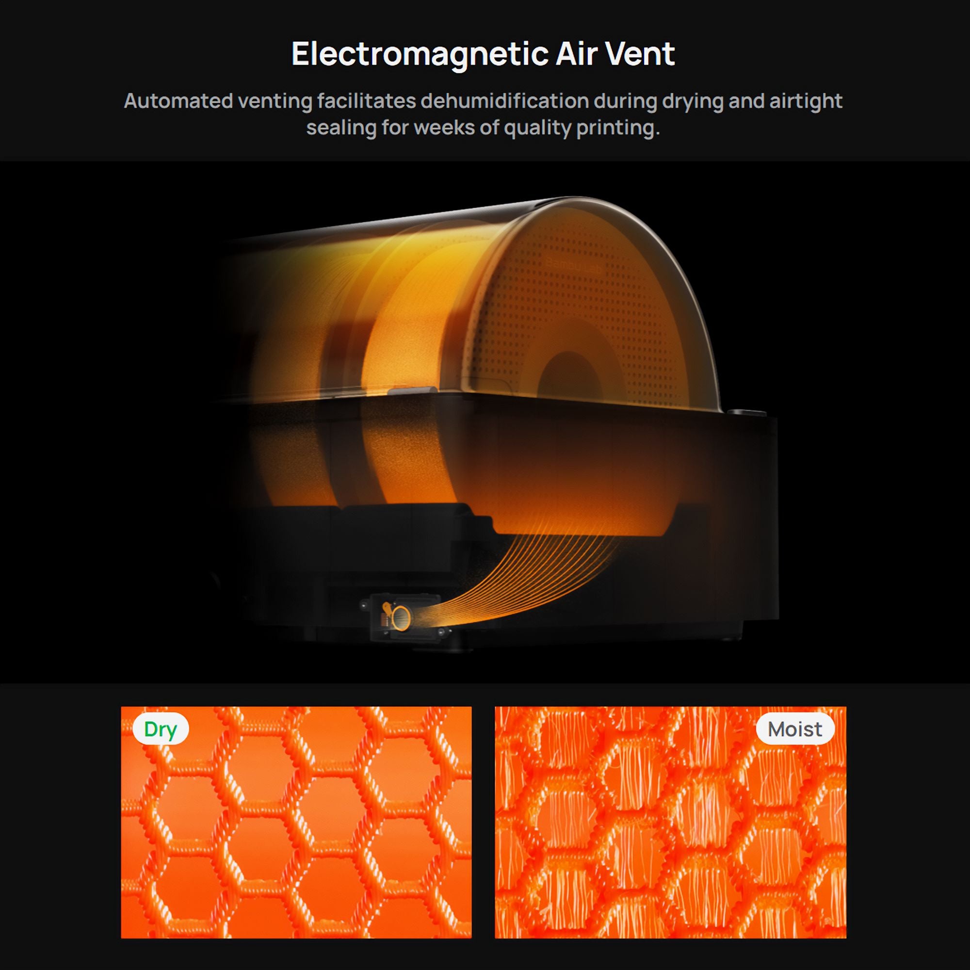AMS 2 PRO Filament System: Experience our most reliable multi-color printing system yet. The AMS 2 Pro features an enhanced design for a better user experience and, crucially, introduces long-awaited filament drying. A pioneering active venting system dries filament 30% faster than sealed heating, maintaining low humidity for superior storage and print quality.