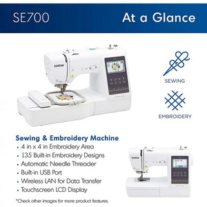 Take your sewing and embroidery skills to the next level with the Brother SE700 Sewing & Embroidery 4" x 4" Combo Machine, the best reviewed mid range computerized sewing and embroidery machine and the replacement to the Brother SE600. Equipped with a generous workspace and a stylish yet modern cosmetic, the SE700 has 135 built-in embroidery designs, 10 built-in embroidery fonts, over 103 built-in sewing stitches, and 10 styles of one-step auto-size buttonholes.