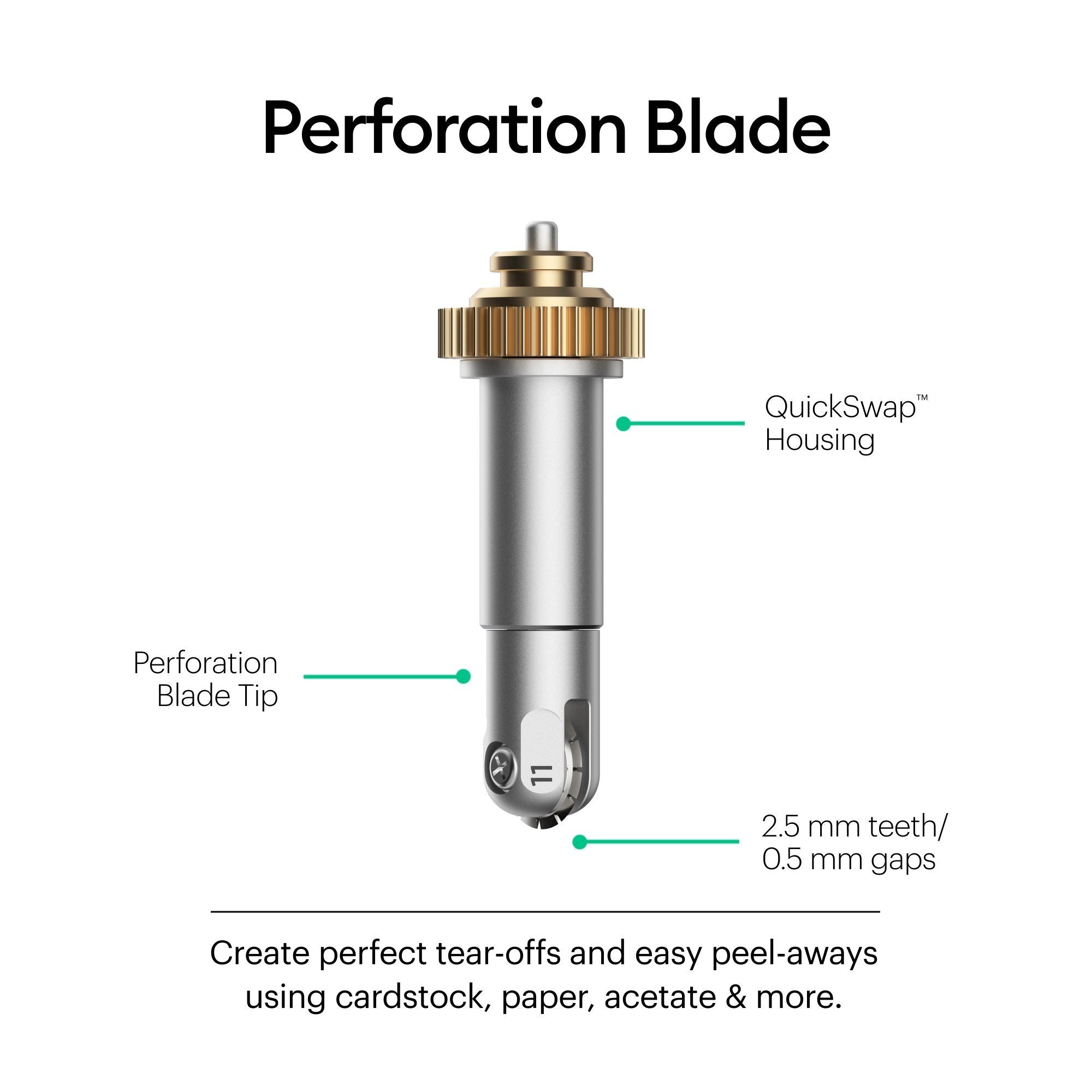 Get the perfect tear quickly and effortlessly with precise perforation cuts for a wide variety of projects. To create uniform, finely perforated lines for any design, just snap this tip onto the QuickSwap Housing and tell your Cricut Maker to "Go!" Evenly spaced perforation lines allow for clean, even tearing without the need to fold beforehand – especially great for shapes with curves. Perfect for tear-out booklet pages, raffle tickets, homemade journals, or for any project that demands a clean tear
