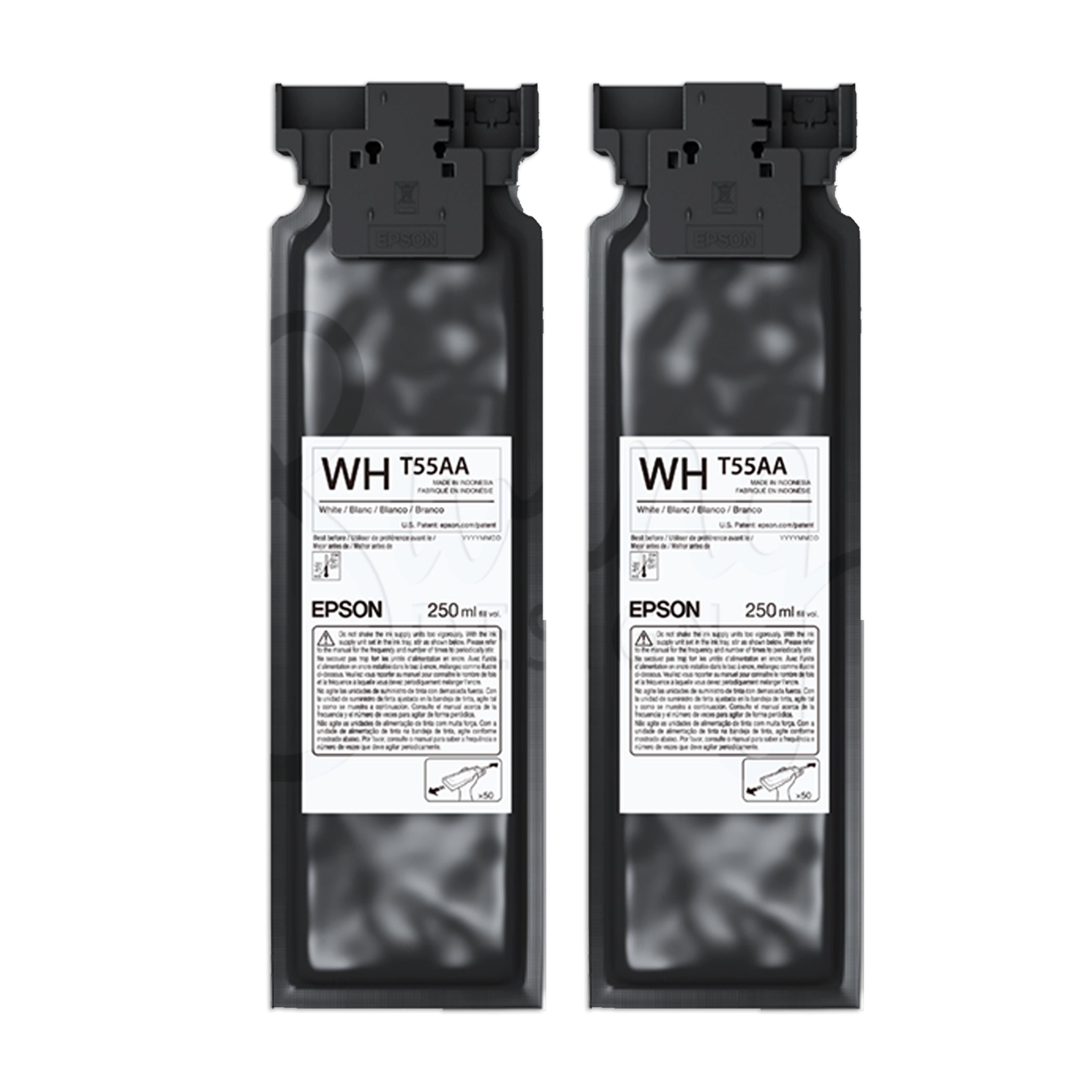 Authentic Epson UltraChrome DG2 refill Inks for Epson SureColor F1070 Direct-to-Garment (DTG) Printer. 250ml of White #T55AA20 refill ink. Epson UltraChrome DG2 Inks are durable, vibrant and safe, with outstanding color performance, plus equal pricing for color and white inks. DG2 ink are great for both DTG & DTF printing.