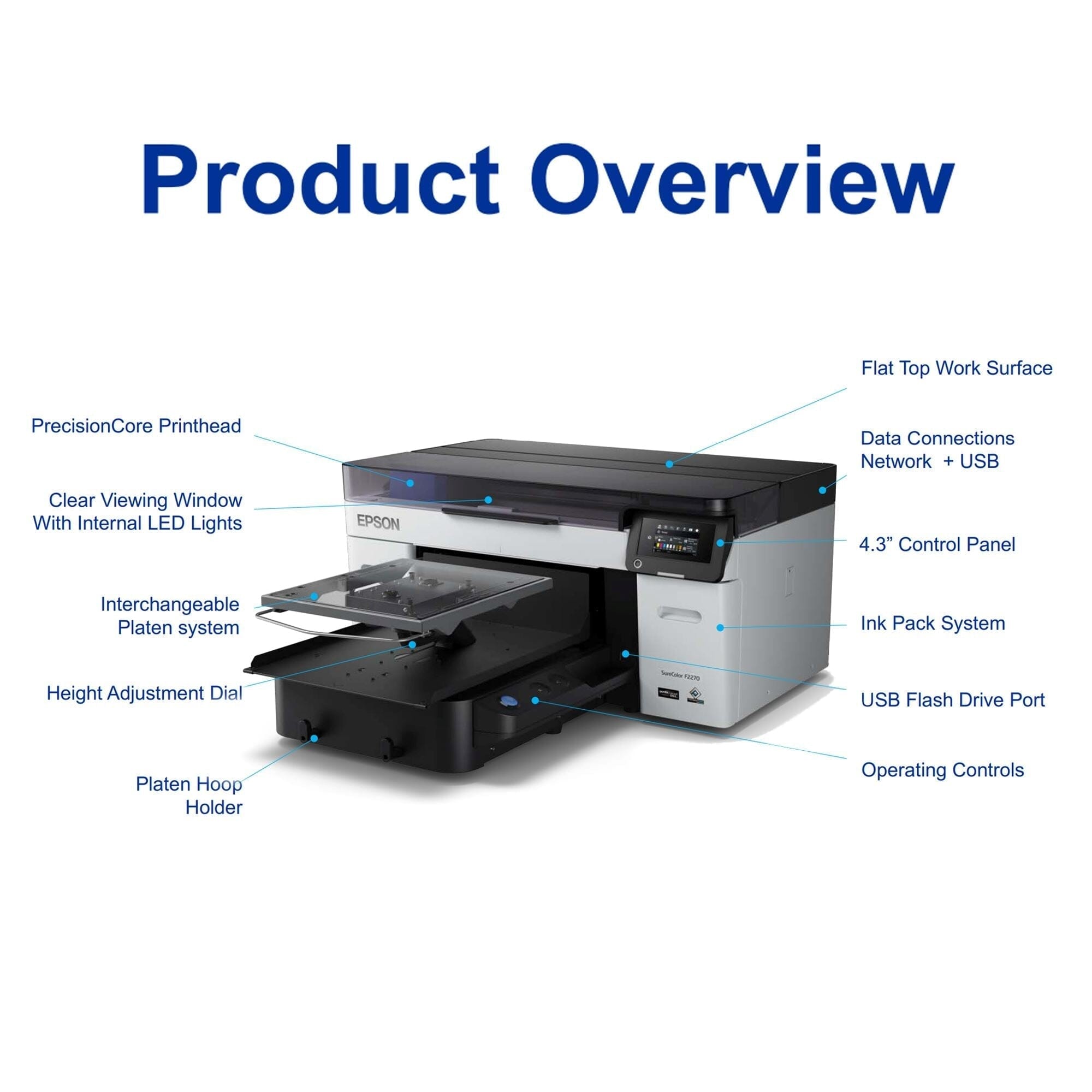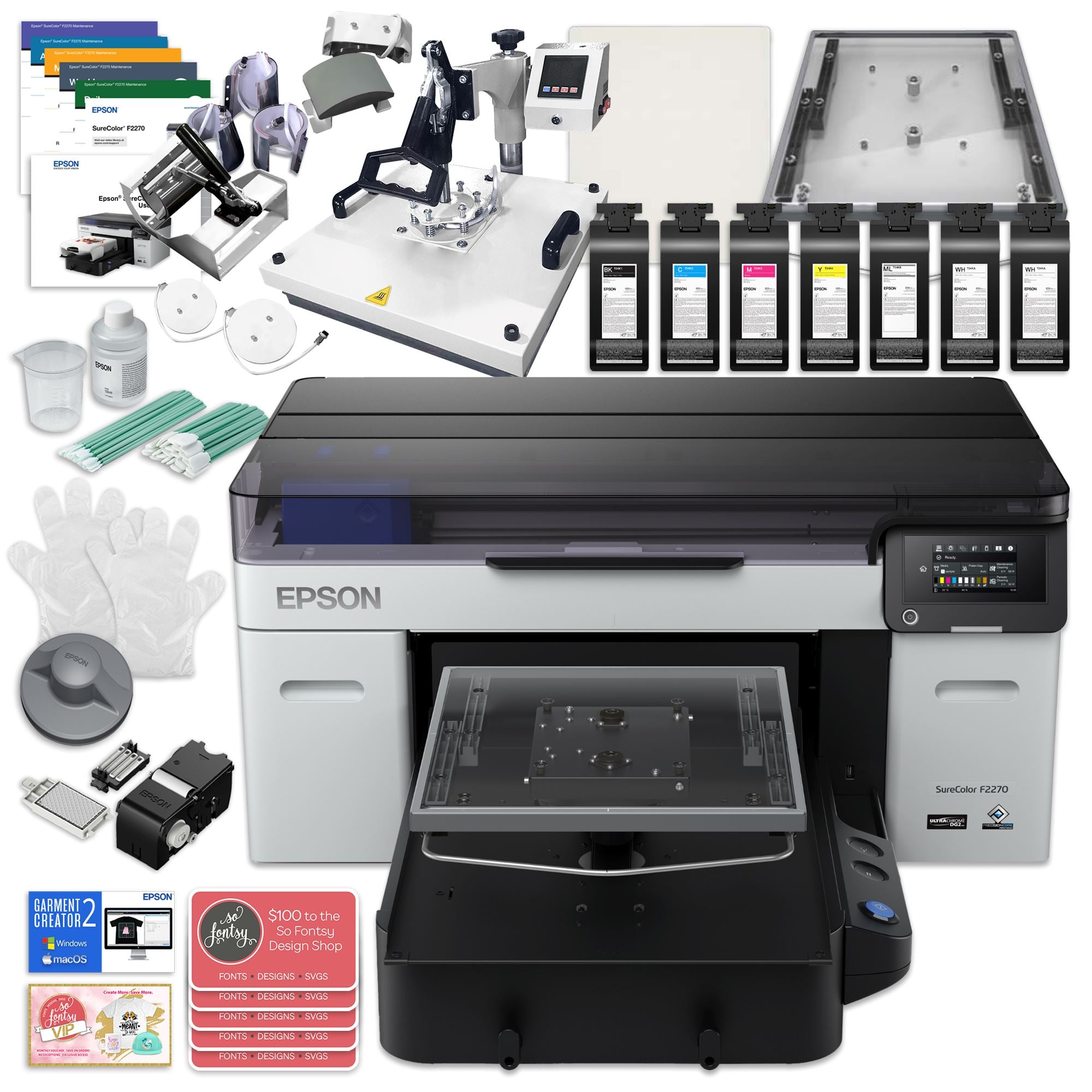 Take Direct to Garment (DTG) and Direct to Film (DTF) printing to the next level with the 2-in-1 dual function Epson F2270 hybrid with heat press bundles, the best garment & textile printer on the market. We offer the best priced F2270 Printer bundles with lifetime support.