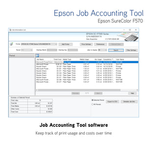 Epson SureColor PRO F570 24" Dye Sublimation Printer bundled with Swing Design's 8-in-1 15" Swing Away Heat Press - Turquoise. Epson's SureColor F570 model# SCF570PE with Epson Edge Print Pro software with Adobe PS3 and PDF Print Engines gives you the lowest cost per print in the industry. Utilize Epson's refillable sublimation inks at 140ml per refill vs the industry standard of 32ml and at a fraction of cost. Get fast, reliable dye-sub printing right out of the box. Ideal for polyester textiles, personalizing awards, mugs, art, mousepads, tiles, wood, acrylic, glass, and more. This high-performance dye-sublimation printer delivers professional-quality prints using powerful PrecisionCore technology. A turnkey solution, the SureColor F570 arrives with a host of convenient features to streamline workflow, including specialized transfer paper rolls for both rigid and soft media, a 50-sheet auto-feed tray and built-in cutter, and drivers for both Windows and Mac. Plus, with its remarkably compact size, space-saving design, you can maximize workshop space.