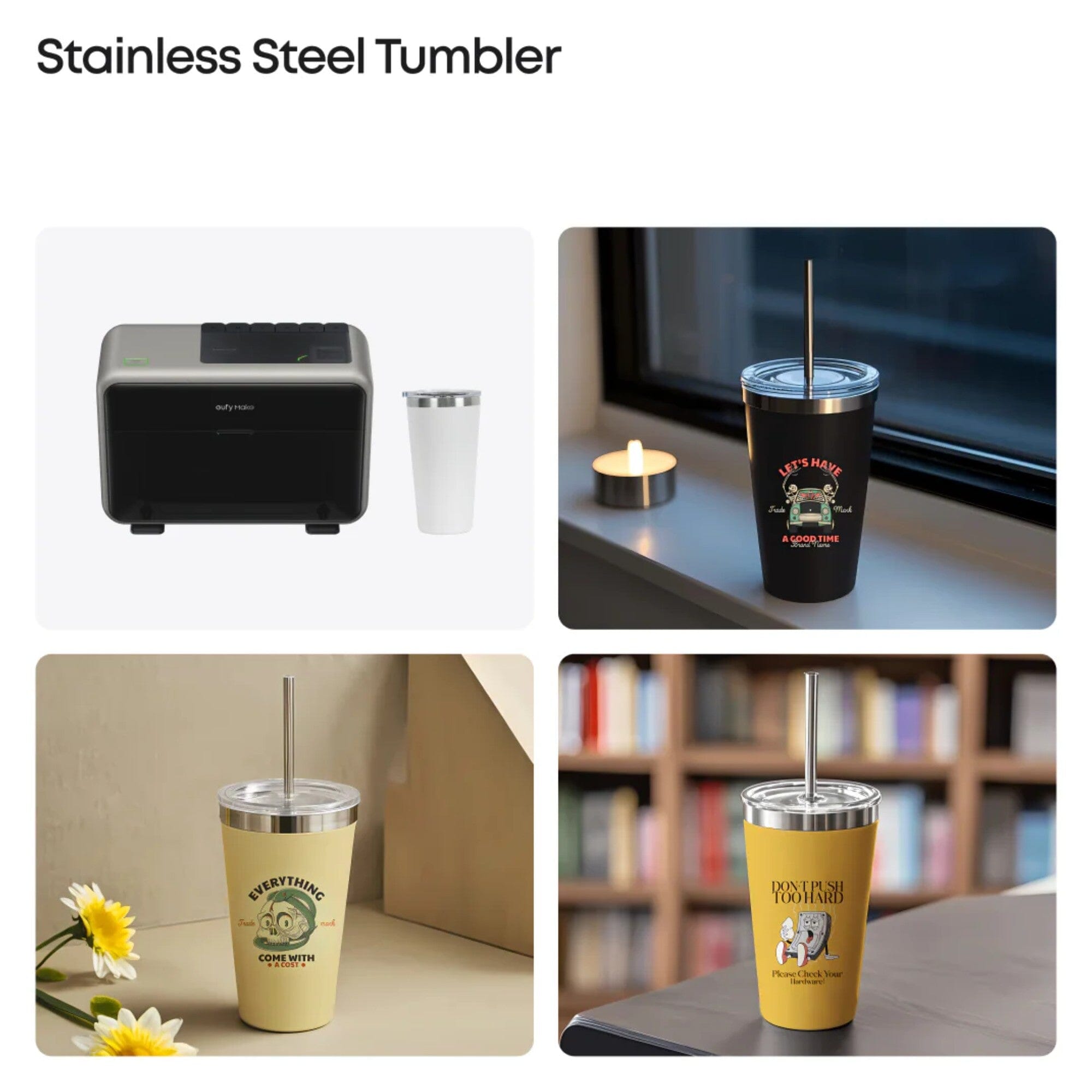 Discover the Ultimate Blank Canvas for Personalized Drinkware. Elevate your crafting game with the eufyMake Stainless Steel Blank Kit, a must-have collection of high-quality, pre-treated blanks designed exclusively for the revolutionary eufyMake E1 UV Printer. This 6-piece stainless steel tumbler set transforms ordinary mugs into extraordinary, one-of-a-kind pieces, perfect for custom tumbler printing. Whether you're a DIY enthusiast, Etsy seller, or small business owner specializing in branded tumblers and custom mugs, these durable blanks ensure seamless integration with the E1's rotary attachment for vibrant, textured designs that pop. Say goodbye to sublimation hassles and hello to direct-to-object UV printing on curved surfaces – no transfers, no mess, just professional results every time.