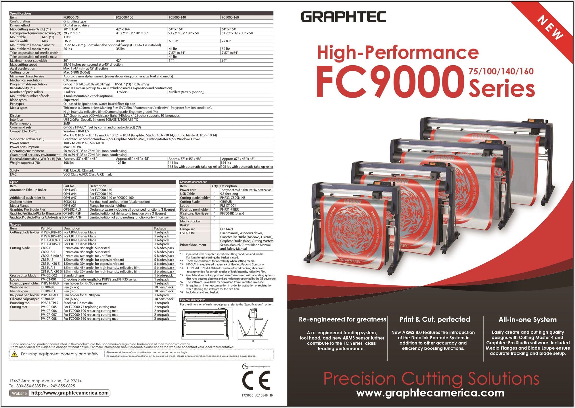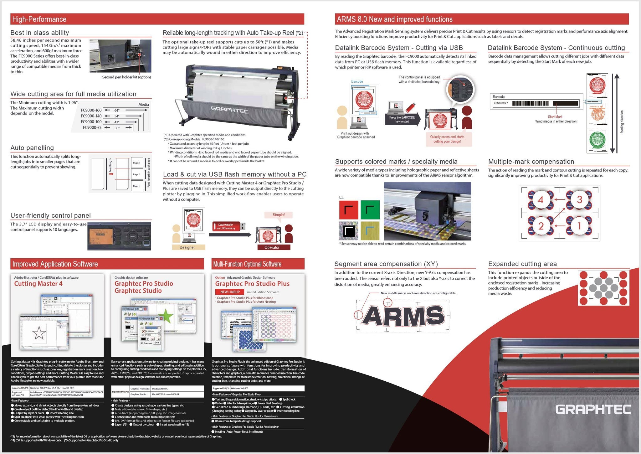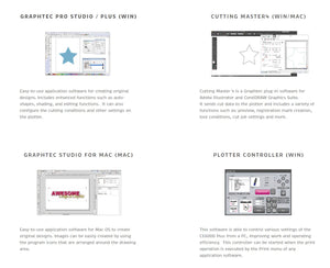 Software - The FC9000 Series comes complete with our full complement of Graphtec Software along with Ethernet Connectivity. Software includes Cutting Master 5 plug-in for Adobe & Corel Users and our popular Graphtec Studio 2 software for design & cut graphics. The software works with both PC and MAC platforms, or use the handy new USB Thumb Drive Port if needed.