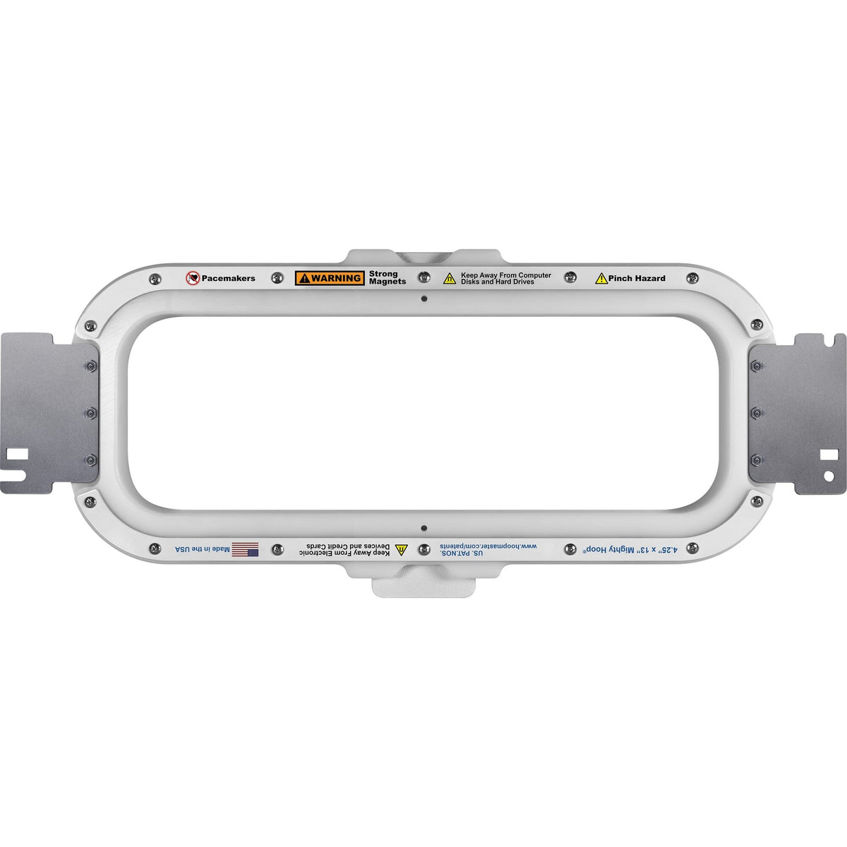 The inside dimension of this hoop is 4 1/4″ x 13″ (4.25 x 13″, or 108mm x 330mm)