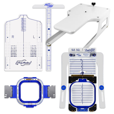 This HoopMaster System kit contains everything you need for the 5.5″ Mighty Hoop for the Brother PR Series: 1 needle, 6 needle, and 10 needle embroidery machines including Brother PRS100 Embroidery Machines and Brother PR1055X Multi Needle Embroidery Machines. The HoopMaster system helps align and apply the Mighty Hoops to garments. The HoopMaster is not required to use the Mighty Hoops, but it will make the hooping process quick, easy, accurate and consistent. This is the most common kit sold to new customers.