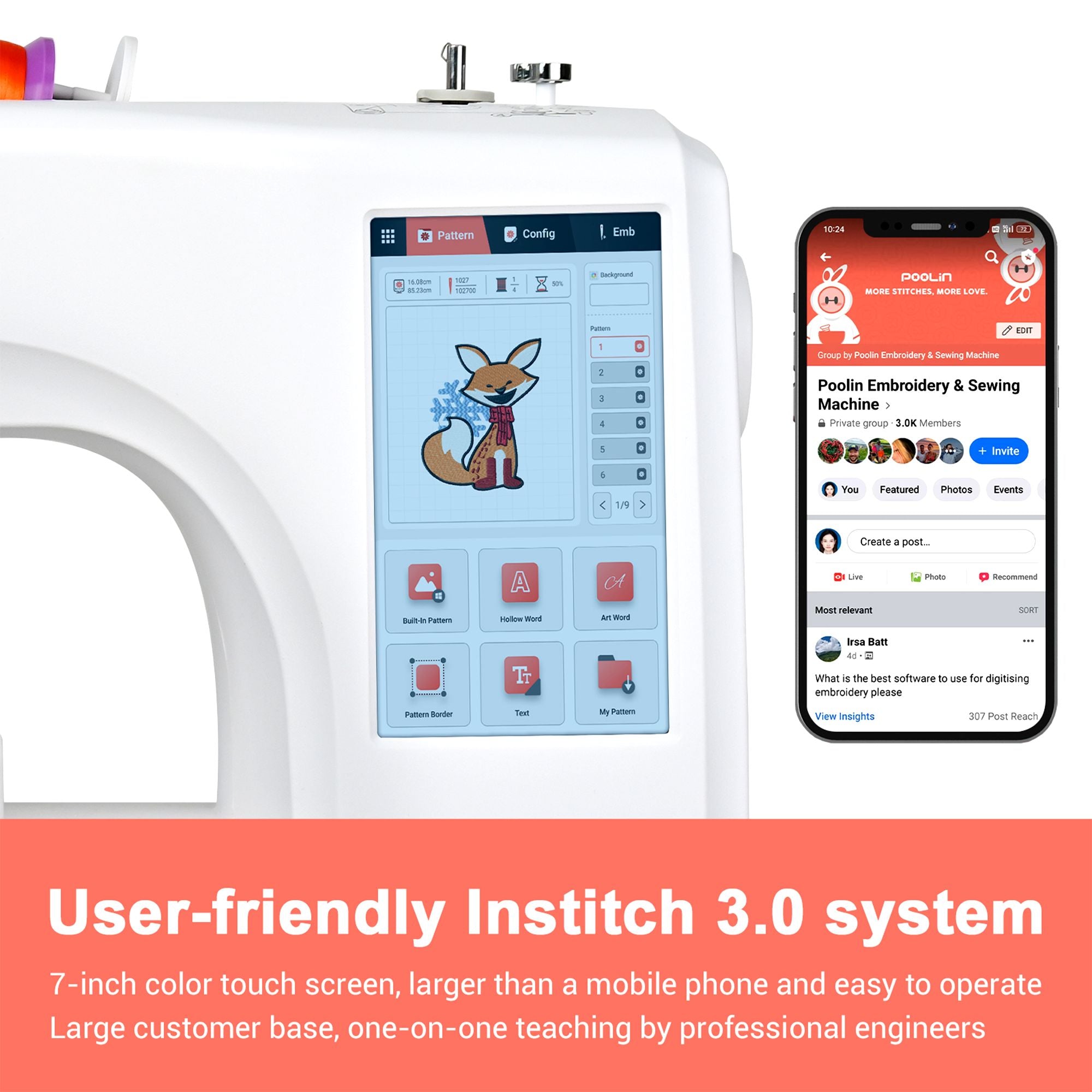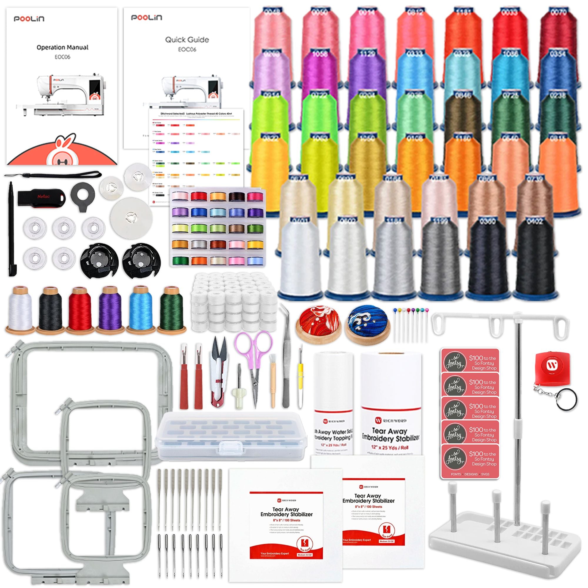 Compared with other brands, such as the Brother PE800 and Brother PE900, Poolin EOC06 has a 7.9''×11'' large embroidery area, great for both home embroidery and commercial embroidery. Perfect for beanies, clothes, patches, toys, pet supplies, etc. Poolin bundles includes everything you need to start creating large embroidery projects out of the box.