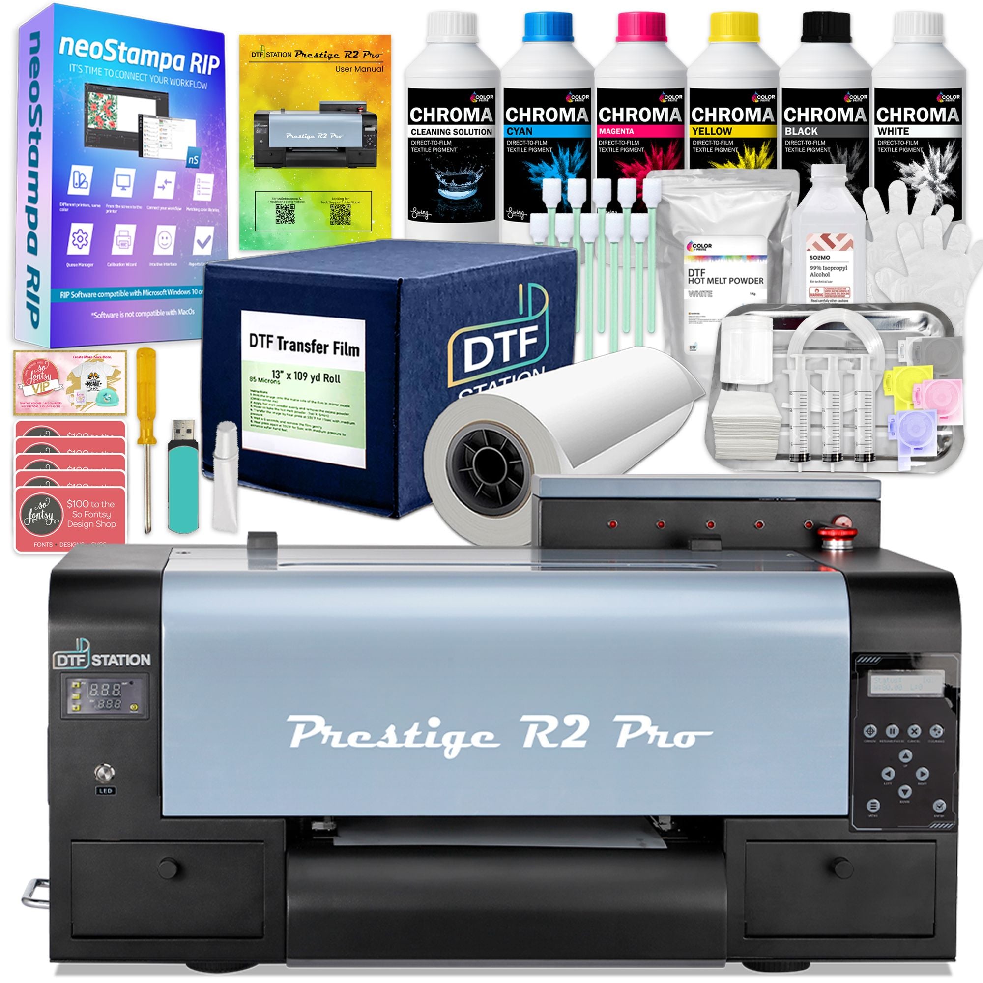 Unleash your printing potential with the new and best selling DTF Station Prestige R2 Pro DTF Printer - true production printing at a value and size you can't find anywhere else. This 13" powerhouse boasts dual Epson i1600 print heads for enhanced reliability and vibrant, crisp prints, alongside a suite of features for easy use and maintenance. Elevate your printing today.