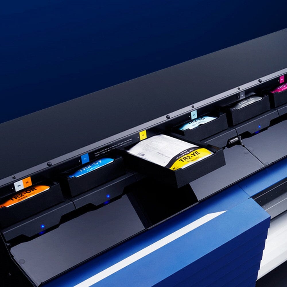 Convenient 500ml pouches fit neatly into reusable cartridges, sliding into a hidden ink bay for a clean ink operation that creates less waste. GREENGUARD Gold certified TR2 ink is virtually odorless and requires no special ventilation or environmental equipment. It’s also durable, scratch resistant, and offers low-running-cost ink production without sacrificing color or image quality.