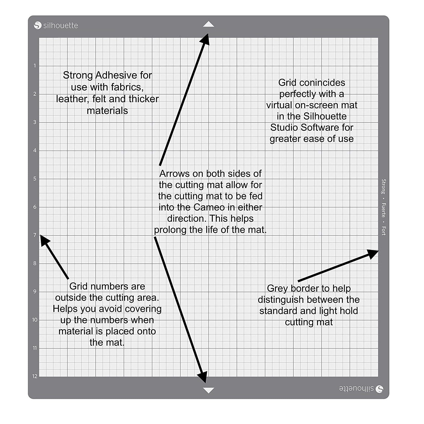 The CAMEO PLUS 15" Strong Grip cutting mat is intended for use with the Silhouette CAMEO PLUS to hold thicker materials in place when sending jobs to the Silhouette machine. The mat has a high tack adhesive level to hold leather, burlap, acetate, and other materials.