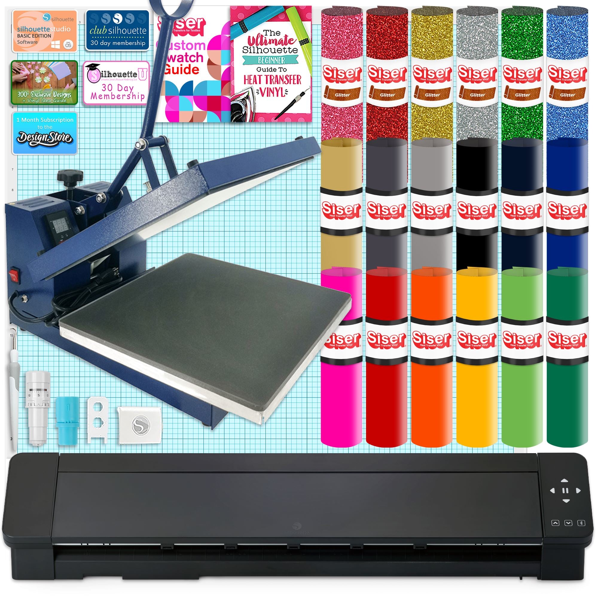 Silhouette Cameo 5 PRO MK-II with 15" x 15" Navy Heat Press & Siser HTV
