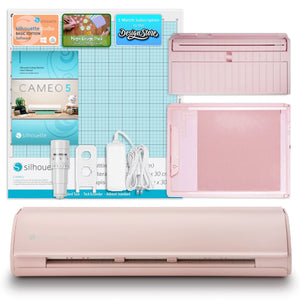 The new Silhouette Cameo 5 is the best vinyl cutting machine on the market for crafters, hobbyist, and small business. The Silhouette Cameo 5 features: quiet cutting with up to 400mm/s, a LED lit touch panel, 5000 grams of force, built in roll feeder, built in vinyl trimmer, one click auto blade, tool detection, dual motor system, built in cross cutter, and more. Swing Designs offers the best Silhouette Cameo 5 Bundles on the market with only the highest graded materials and accessories!