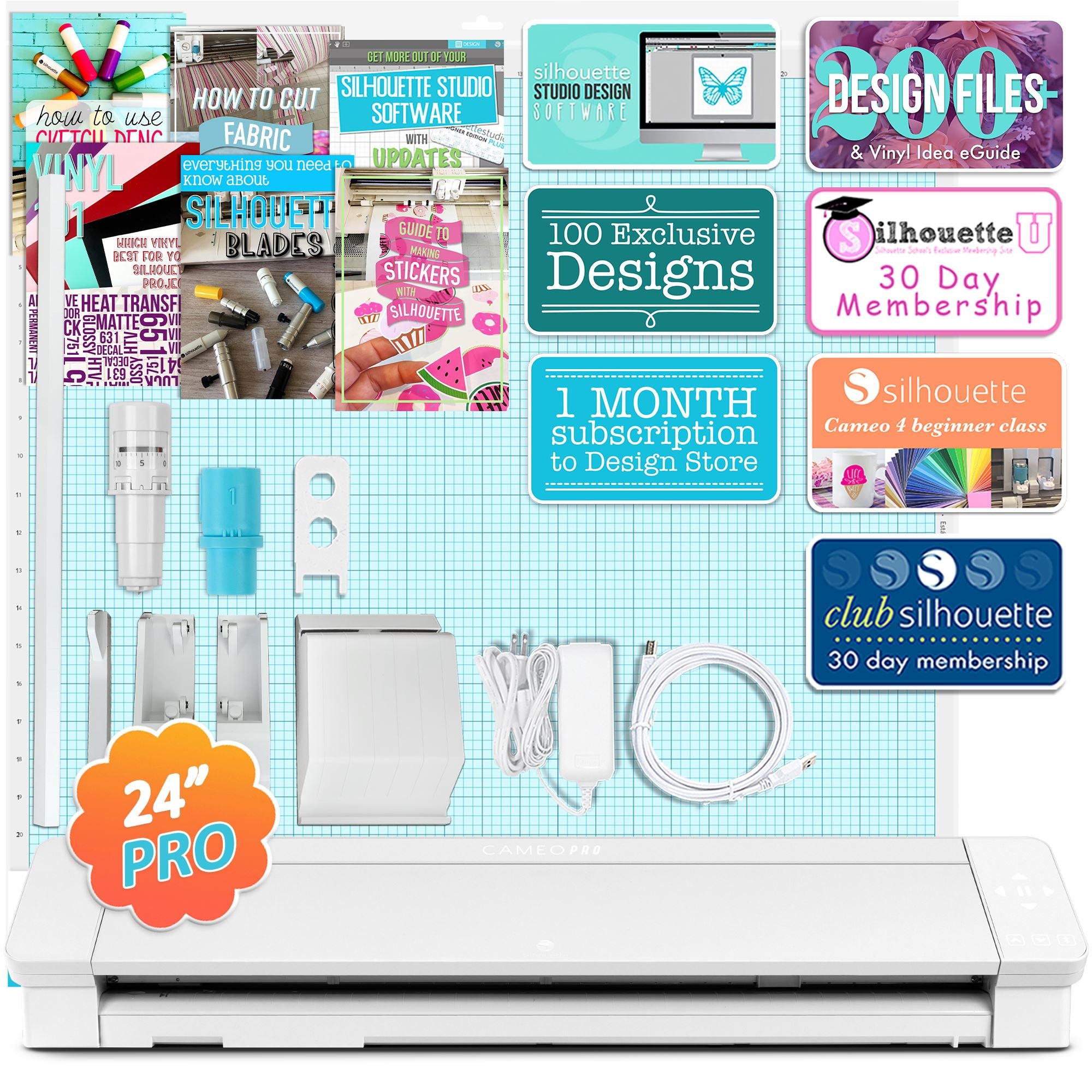 Tackle the largest projects with the new Silhouette Cameo 4 PRO 24" Wide Vinyl Cutting Machine. The Cameo 4 PRO is a precision cutting machine that can cut vinyl, heat transfer (HTV), cardstock, fabric, and more. With a cutting width of up to 24 inches wide, this machine opens up a lot of cutting possibilities. Features: Up to 3xs the speed of the Cameo 3, a LED lit touch panel, 5000 grams of force vs. 250 grams in the Cameo 3, attachable roll feeder, built in vinyl trimmer, upgraded one click auto blade, tool detection, dual motor system, built in cross cutter, and more.