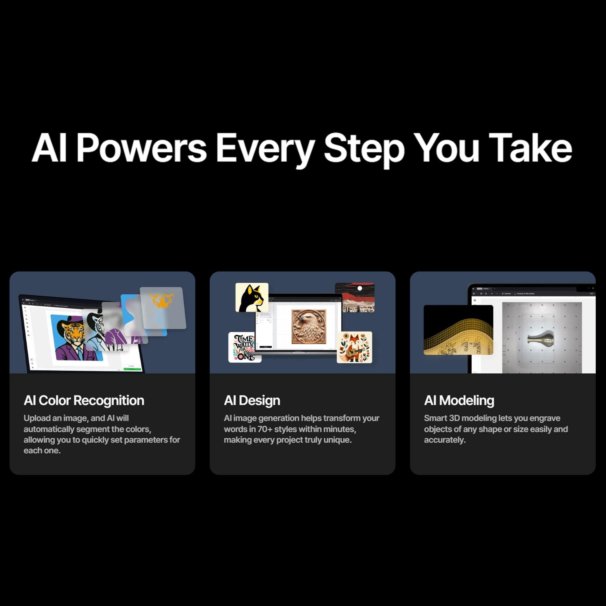 Advanced Safety Features: AI Fire Detection with CO2 suppression, Class 1 laser safety, and a robust fire safety set ensure worry-free operation.