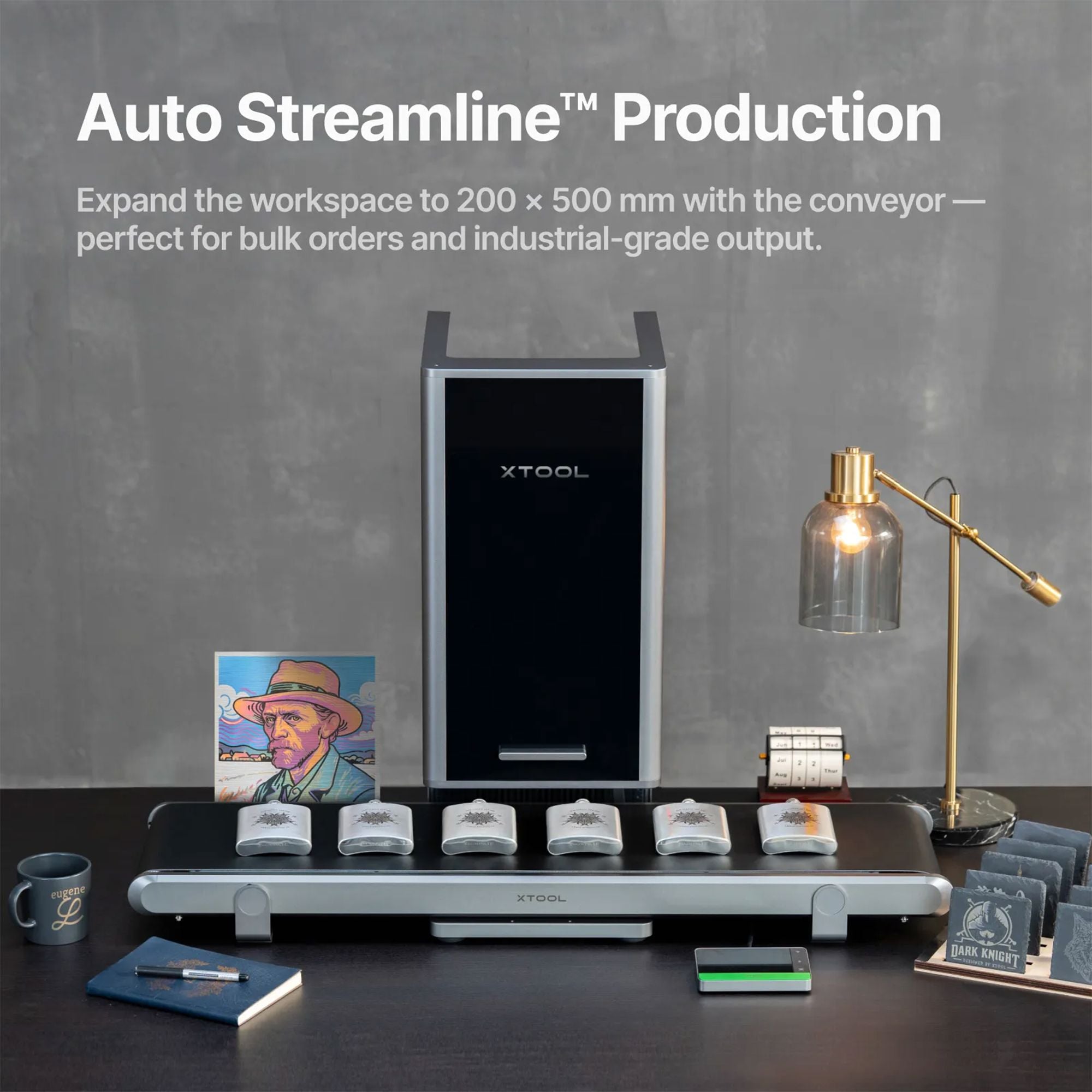 Automatic Conveyor Feeder: Expand the work area to 220mm x 550mm for streamlined bulk production.
