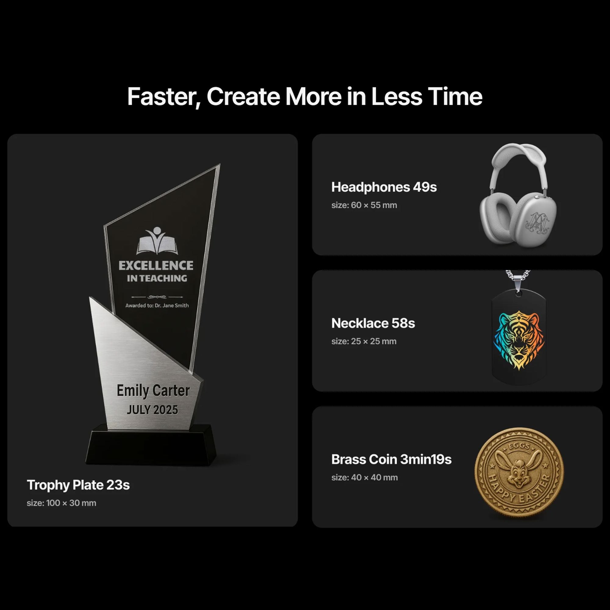 Lightning-Fast Performance: Achieve engraving speeds up to 15,000mm/s, ensuring rapid batch processing for high-demand projects.