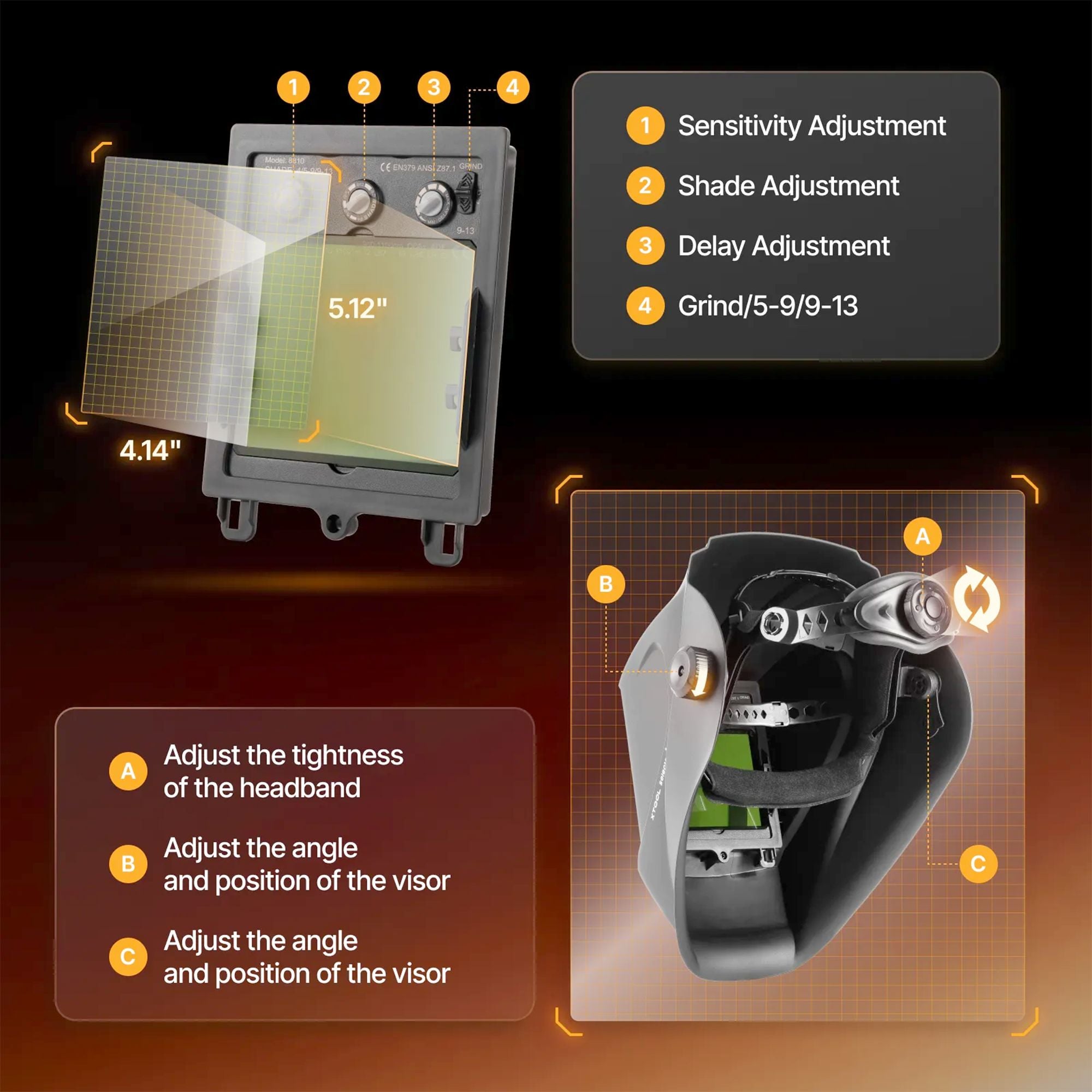 Whether you're welding in a workshop or on a job site, this helmet delivers uncompromised safety and comfort. The adjustable sensitivity and delay settings allow you to customize the darkening response, while the sleek design minimizes neck strain during extended use.
