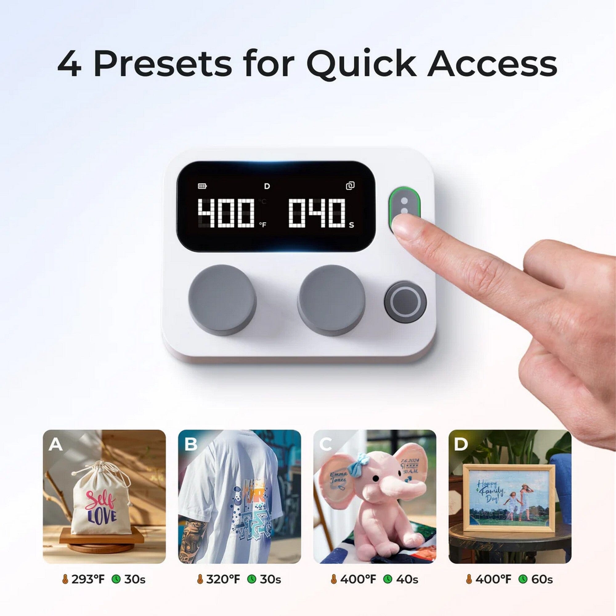 xTool Smart 3-in-1 Heat Press Set is the best heat press option on the market for under $300. Now you can combine the ease of a portable heat press with the ability to mount it to a stand giving you the ability of even consistent pressure with every press. Great for DTF Transfers, Heat Transfer Vinyl (HTV), Sublimation and more.